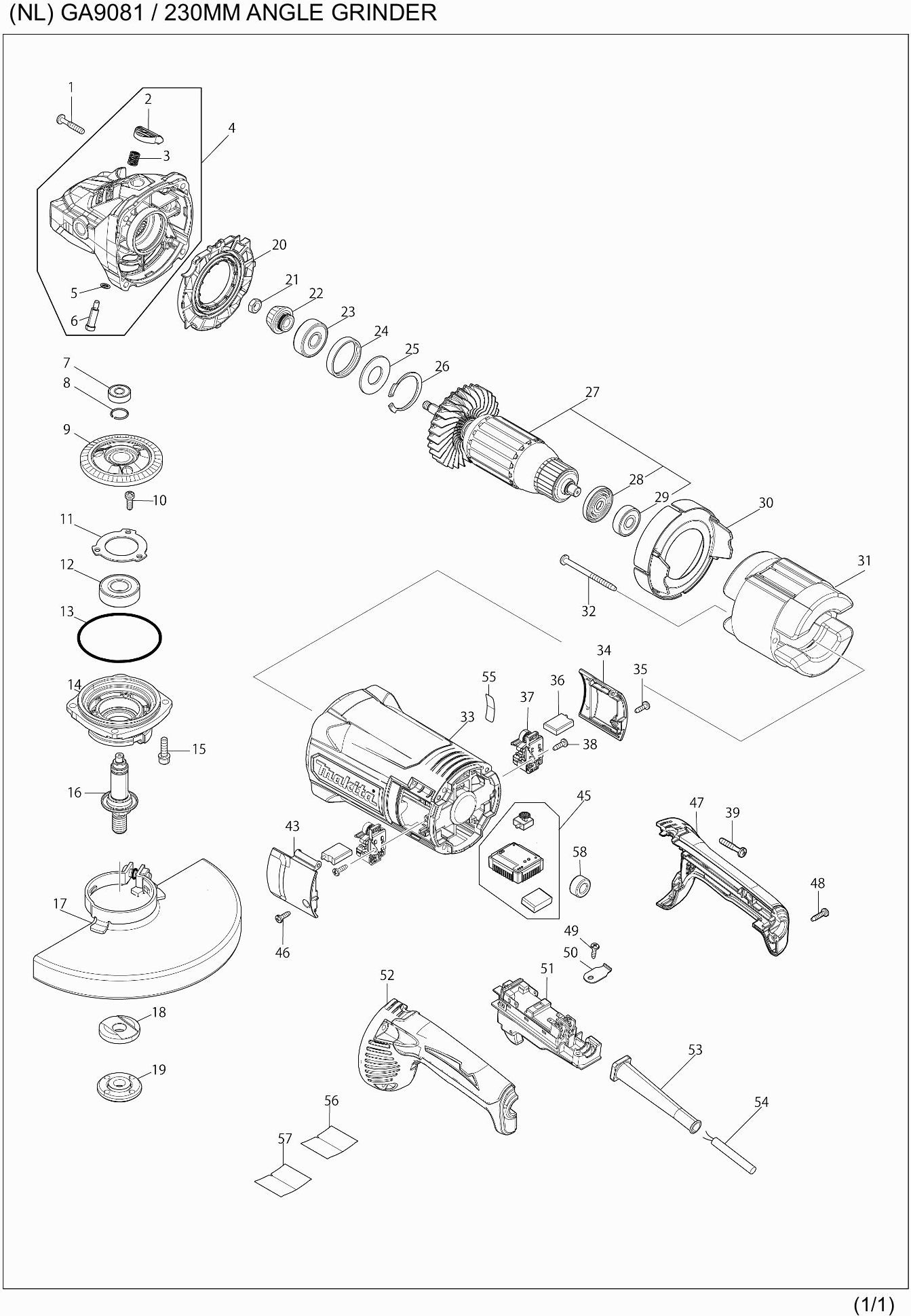 Hier vindt u alle beschikbare onderdelen en tekeningen van de 'Makita GA9081'. Vanaf hier kunt u direct alle gewenste onderdelen bestellen. Vele onderdelen moeten bij de fabrikant besteld worden, dit duurt afhankelijk van het merk, één tot vier weken. Alle informatie die we hebben, staat op onze website, wij kunnen u geen advies geven over wat u nodig heeft, daarvoor zult u de machine ter reparatie in moeten leveren. Let bij het bestellen op het volgende:
