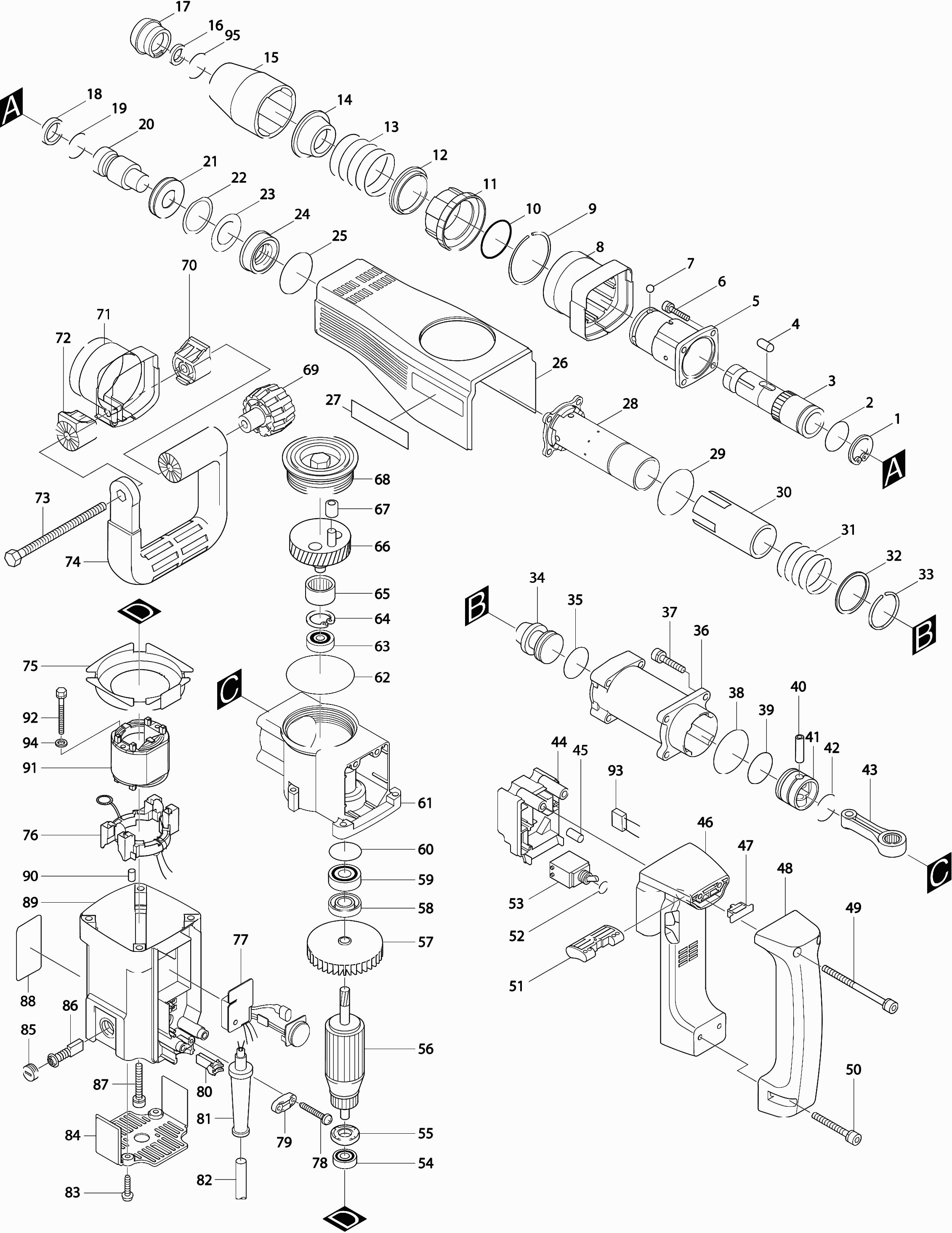 Hier vindt u alle beschikbare onderdelen en tekeningen van de 'Makita HM1100C'. Vanaf hier kunt u direct alle gewenste onderdelen bestellen. Vele onderdelen moeten bij de fabrikant besteld worden, dit duurt afhankelijk van het merk, één tot vier weken. Alle informatie die we hebben, staat op onze website, wij kunnen u geen advies geven over wat u nodig heeft, daarvoor zult u de machine ter reparatie in moeten leveren. Let bij het bestellen op het volgende: