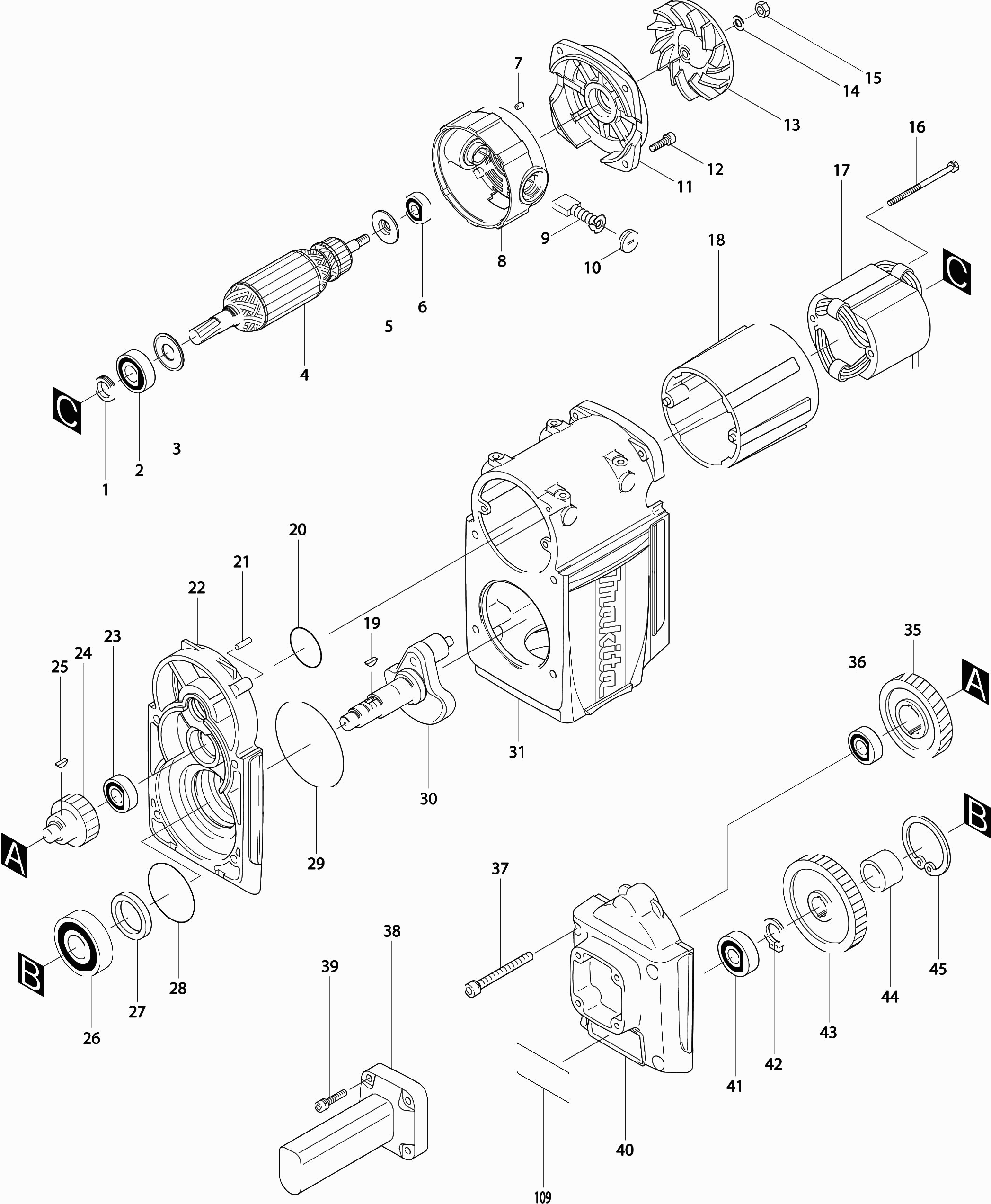 Hier vindt u alle beschikbare onderdelen en tekeningen van de 'Makita HM1810'. Vanaf hier kunt u direct alle gewenste onderdelen bestellen. Vele onderdelen moeten bij de fabrikant besteld worden, dit duurt afhankelijk van het merk, één tot vier weken. Alle informatie die we hebben, staat op onze website, wij kunnen u geen advies geven over wat u nodig heeft, daarvoor zult u de machine ter reparatie in moeten leveren. Let bij het bestellen op het volgende: