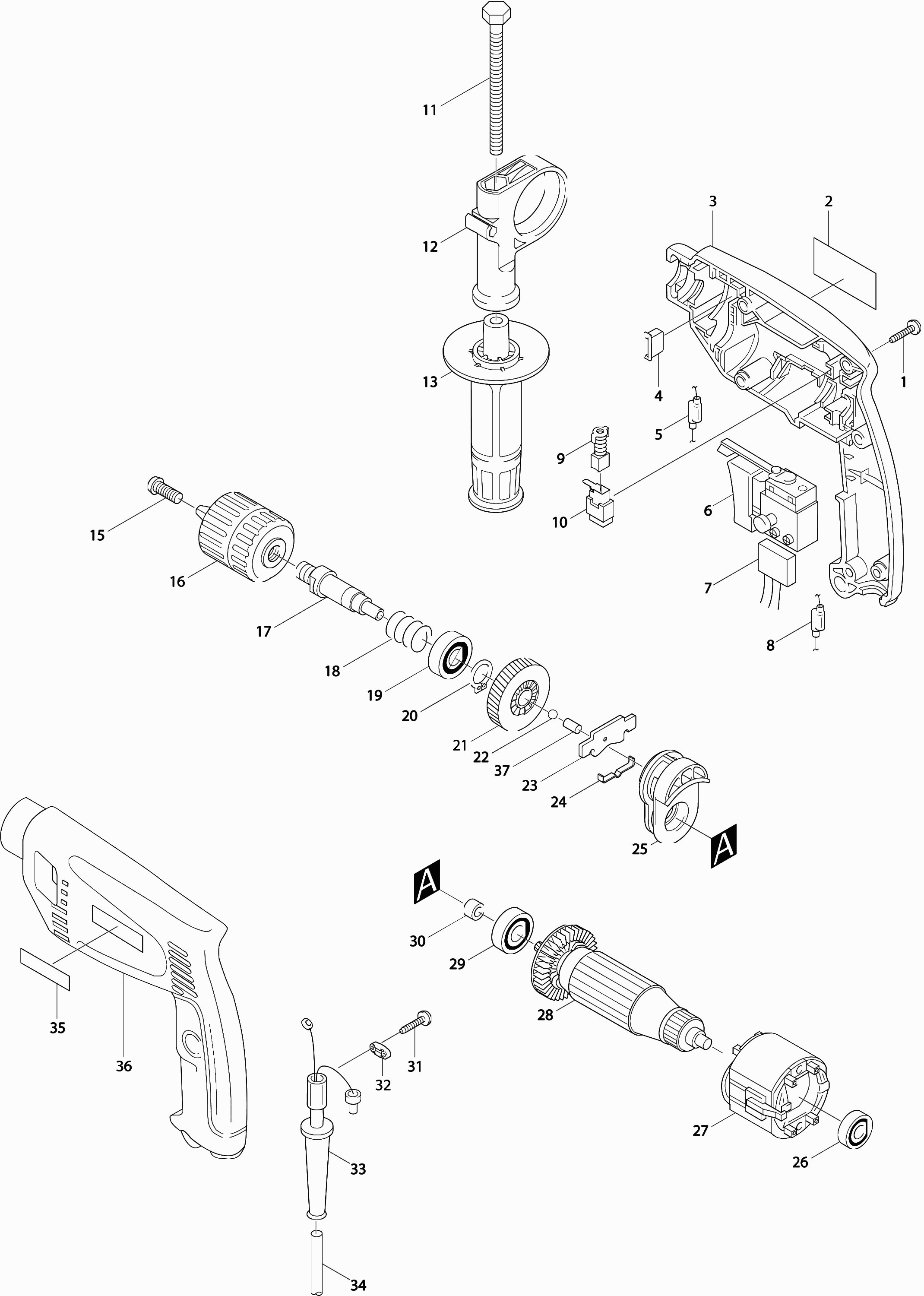 Tekeningen van de Makita HP1501