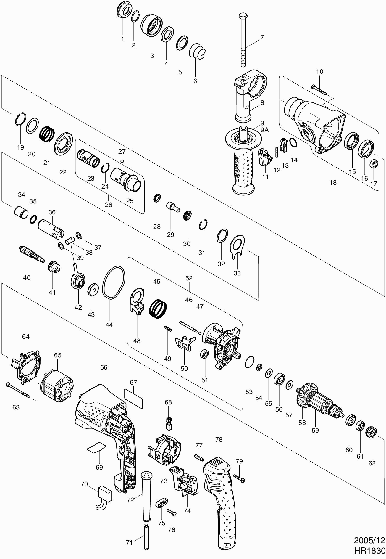 Onderdelen lijst van de Makita HR1830