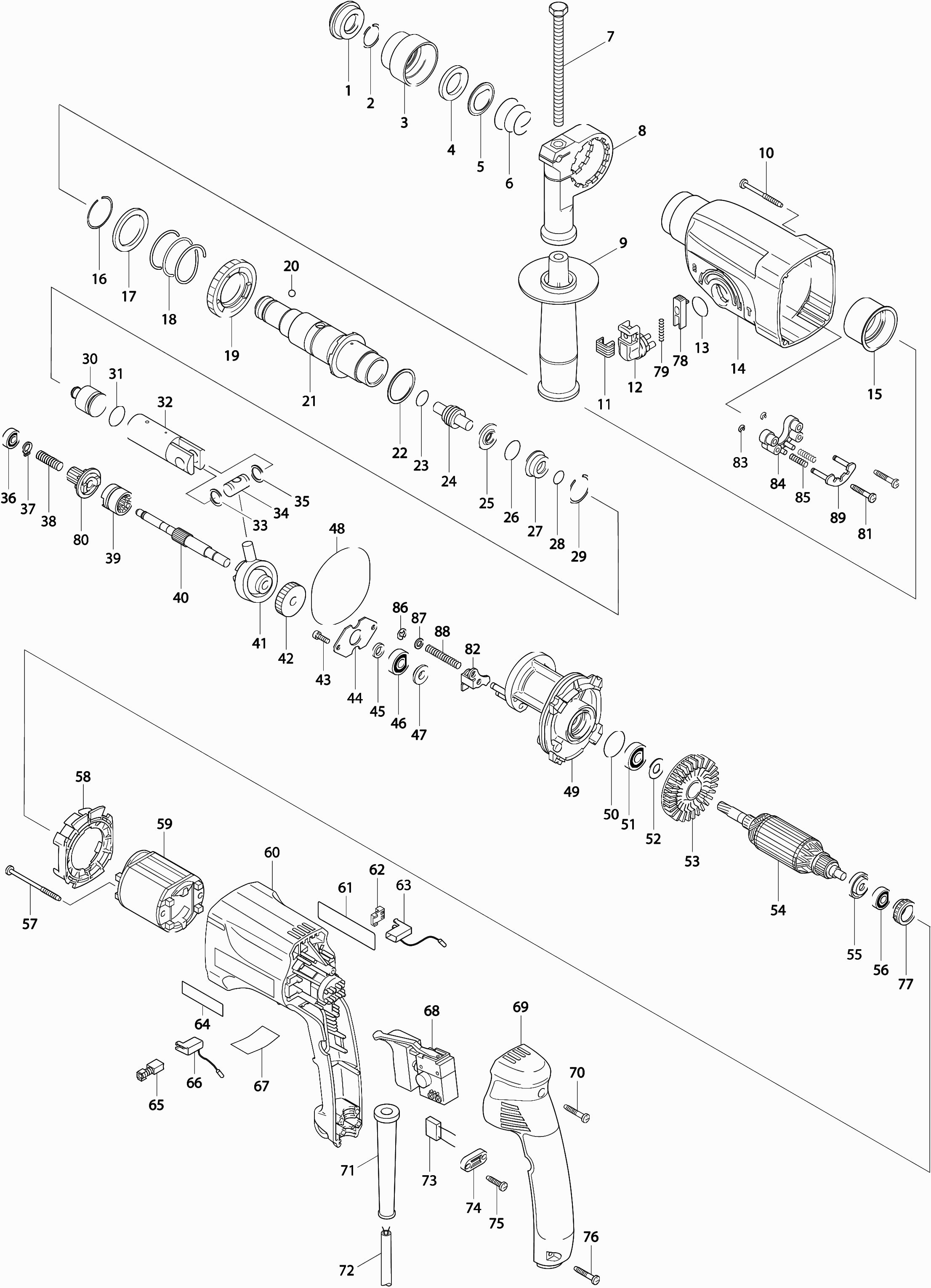 Tekeningen van de Makita HR2450