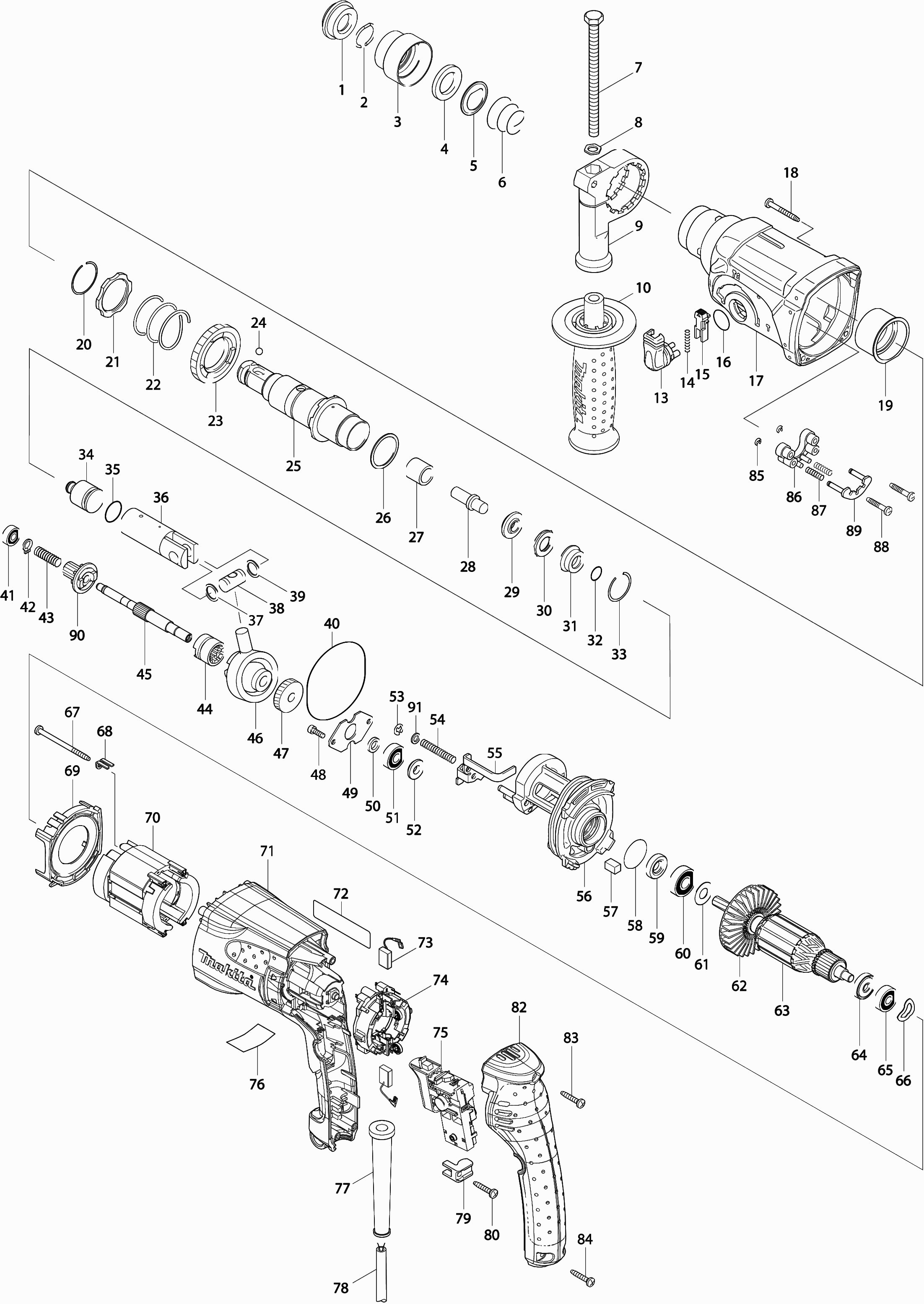 Hier vindt u alle beschikbare onderdelen en tekeningen van de 'Makita HR2470BX40'. Vanaf hier kunt u direct alle gewenste onderdelen bestellen. Vele onderdelen moeten bij de fabrikant besteld worden, dit duurt afhankelijk van het merk, één tot vier weken. Alle informatie die we hebben, staat op onze website, wij kunnen u geen advies geven over wat u nodig heeft, daarvoor zult u de machine ter reparatie in moeten leveren. Let bij het bestellen op het volgende: