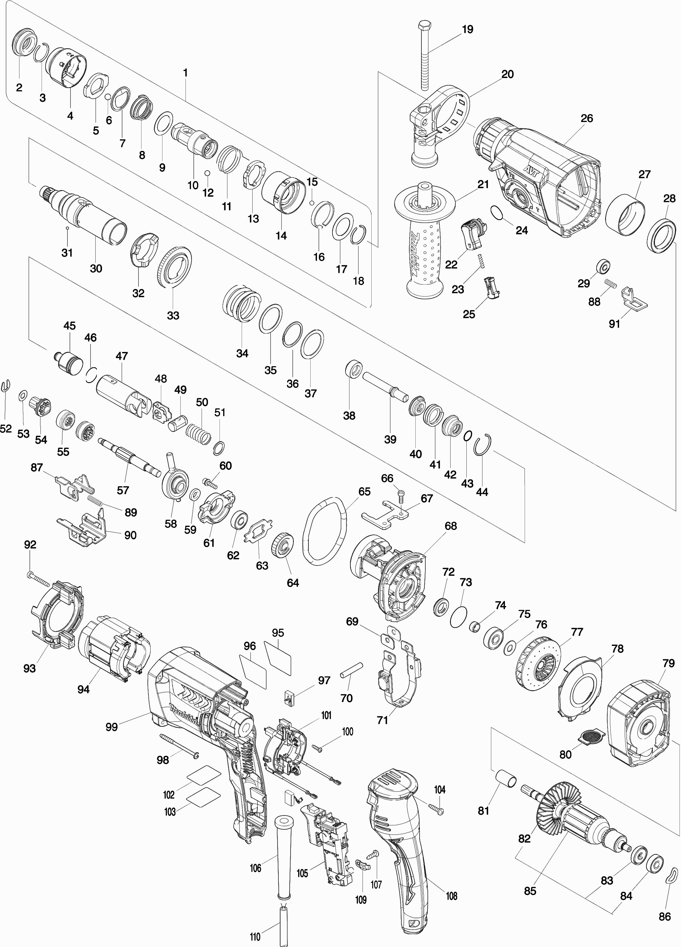Hier vindt u alle beschikbare onderdelen en tekeningen van de 'Makita HR2651T'. Vanaf hier kunt u direct alle gewenste onderdelen bestellen. Vele onderdelen moeten bij de fabrikant besteld worden, dit duurt afhankelijk van het merk, één tot vier weken. Alle informatie die we hebben, staat op onze website, wij kunnen u geen advies geven over wat u nodig heeft, daarvoor zult u de machine ter reparatie in moeten leveren. Let bij het bestellen op het volgende: