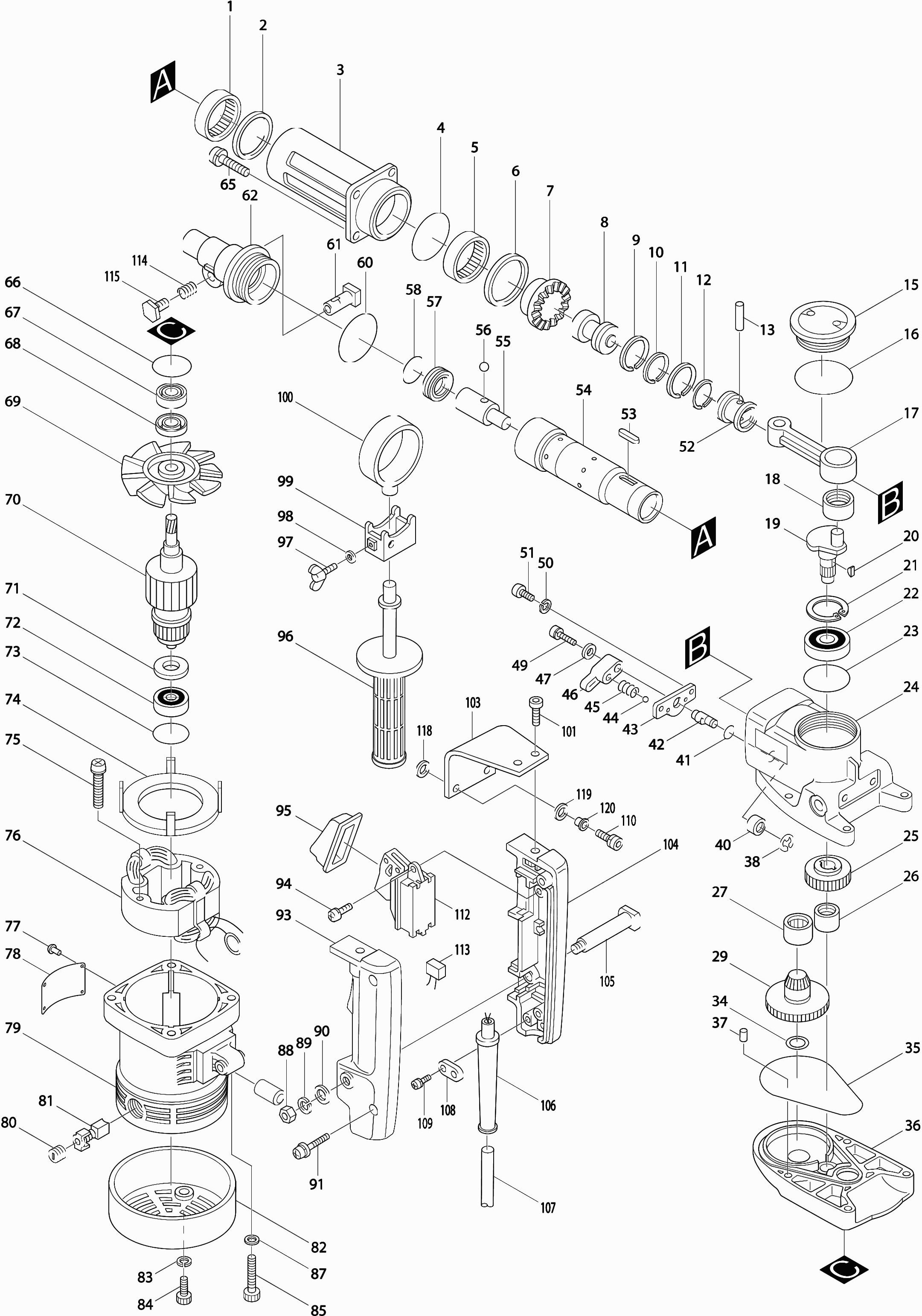 Hier vindt u alle beschikbare onderdelen en tekeningen van de 'Makita HR3850K'. Vanaf hier kunt u direct alle gewenste onderdelen bestellen. Vele onderdelen moeten bij de fabrikant besteld worden, dit duurt afhankelijk van het merk, één tot vier weken. Alle informatie die we hebben, staat op onze website, wij kunnen u geen advies geven over wat u nodig heeft, daarvoor zult u de machine ter reparatie in moeten leveren. Let bij het bestellen op het volgende: