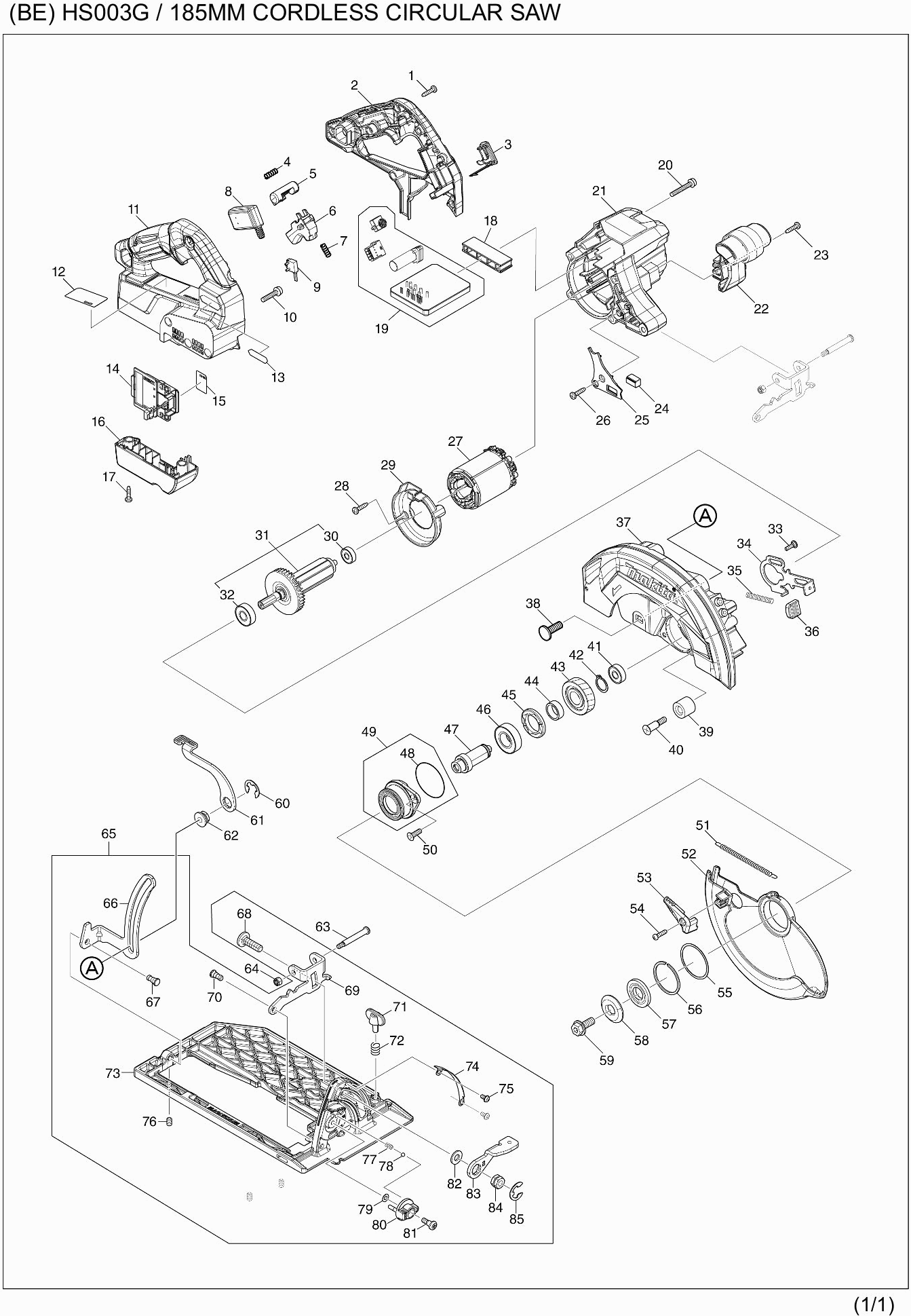 Onderdelen lijst van de Makita HS003G
