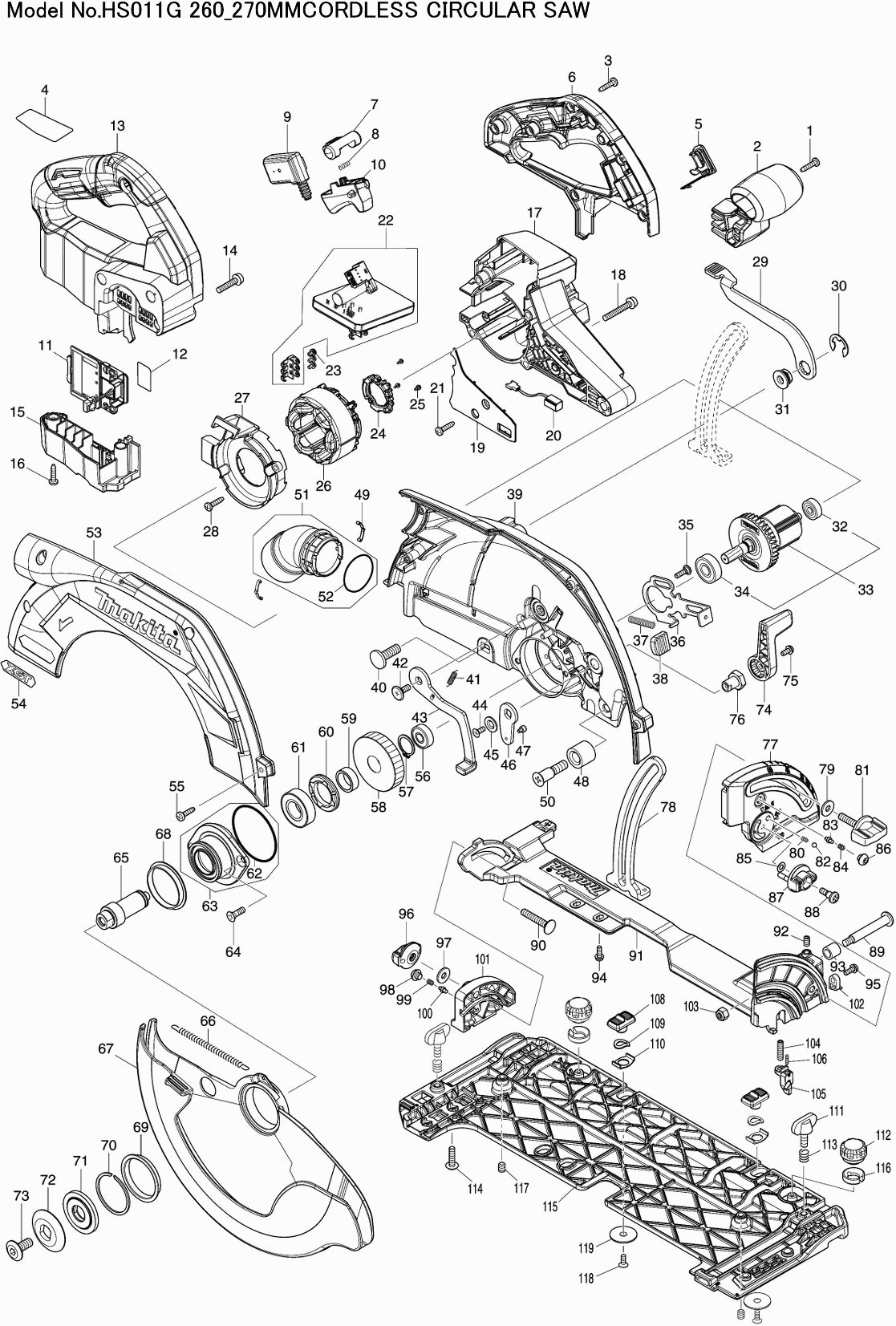 Onderdelen lijst van de Makita HS011G