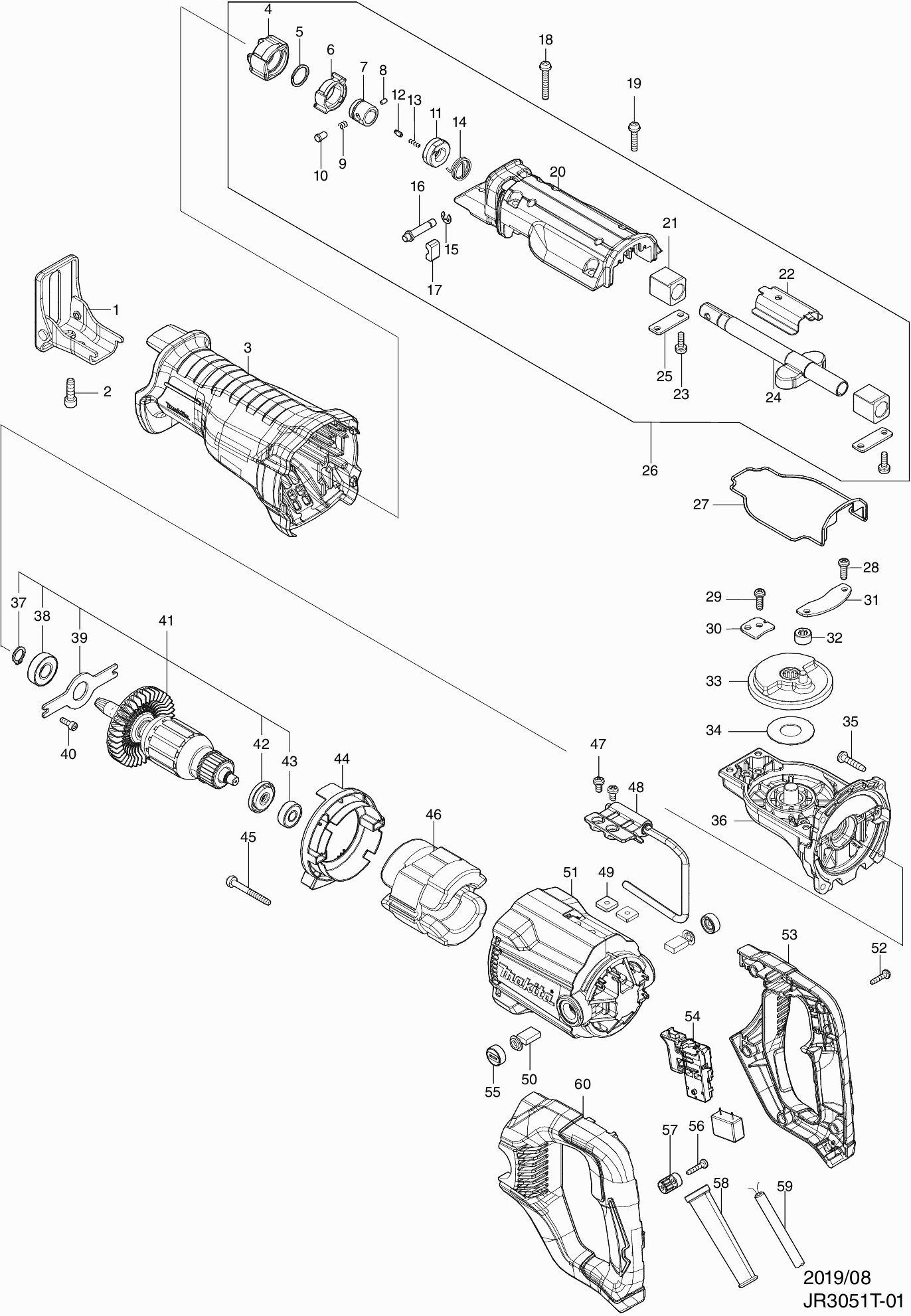 Onderdelen lijst van de Makita JR3051T