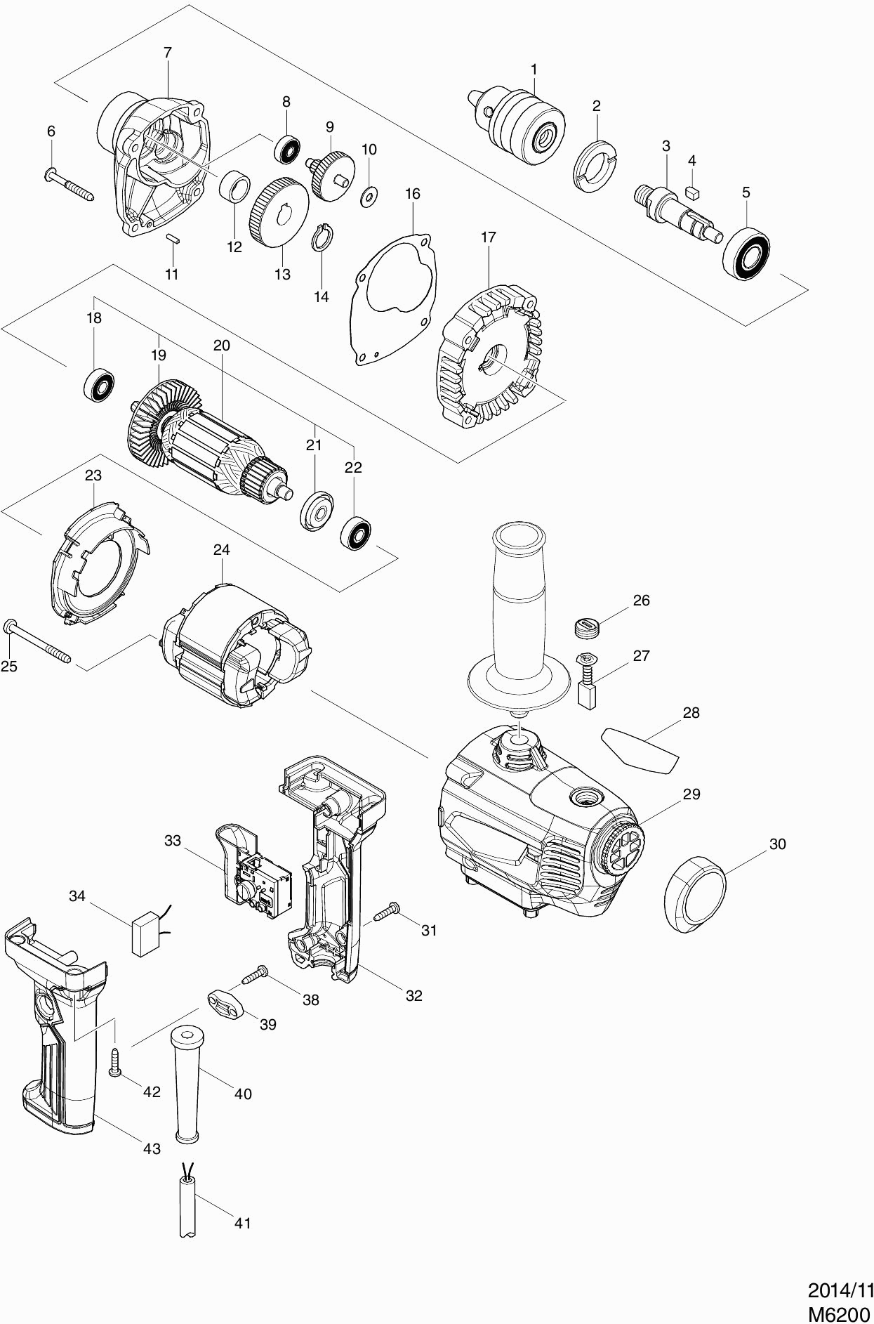 Onderdelen lijst van de Makita M6200
