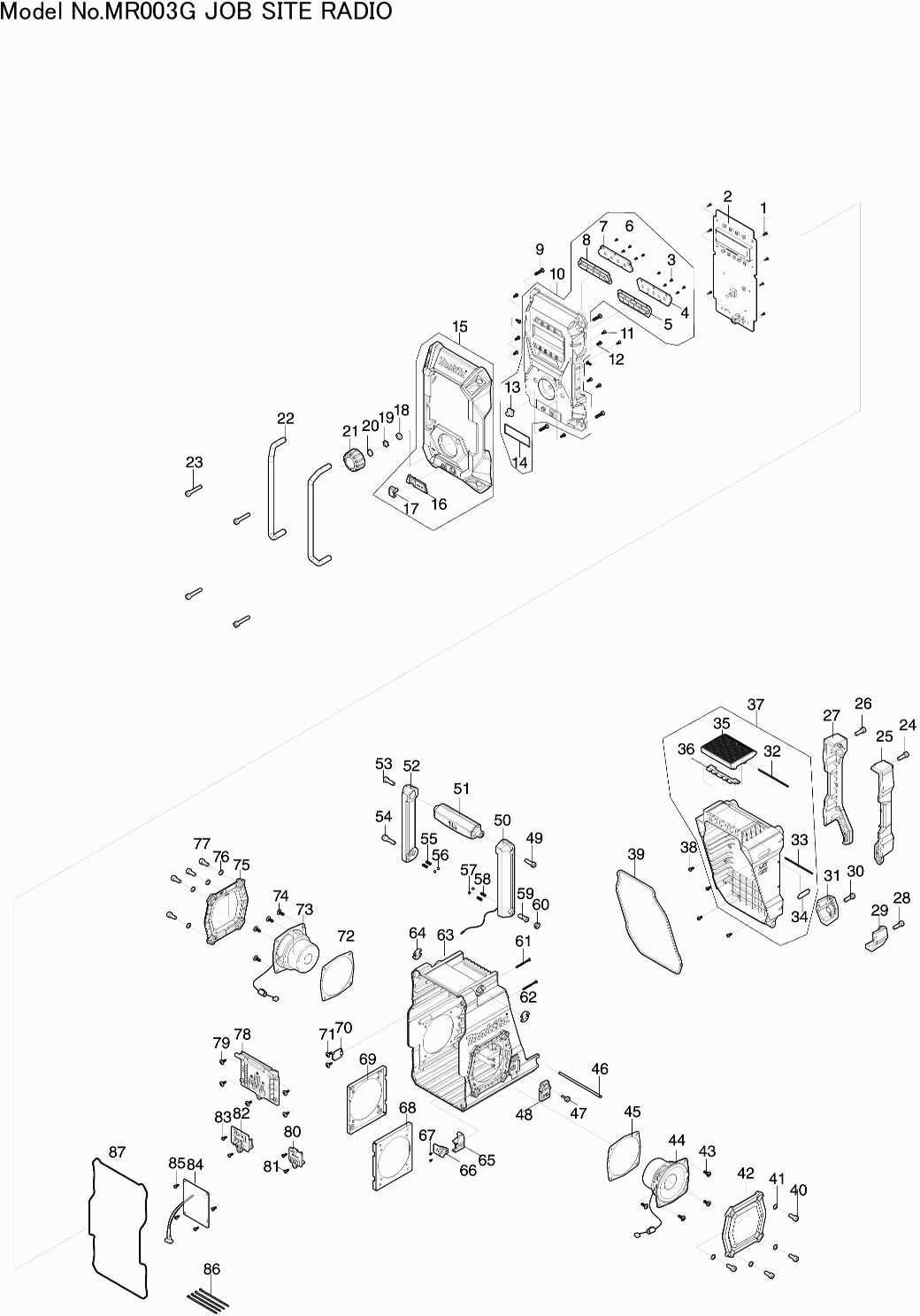 Onderdelen lijst van de Makita MR003G