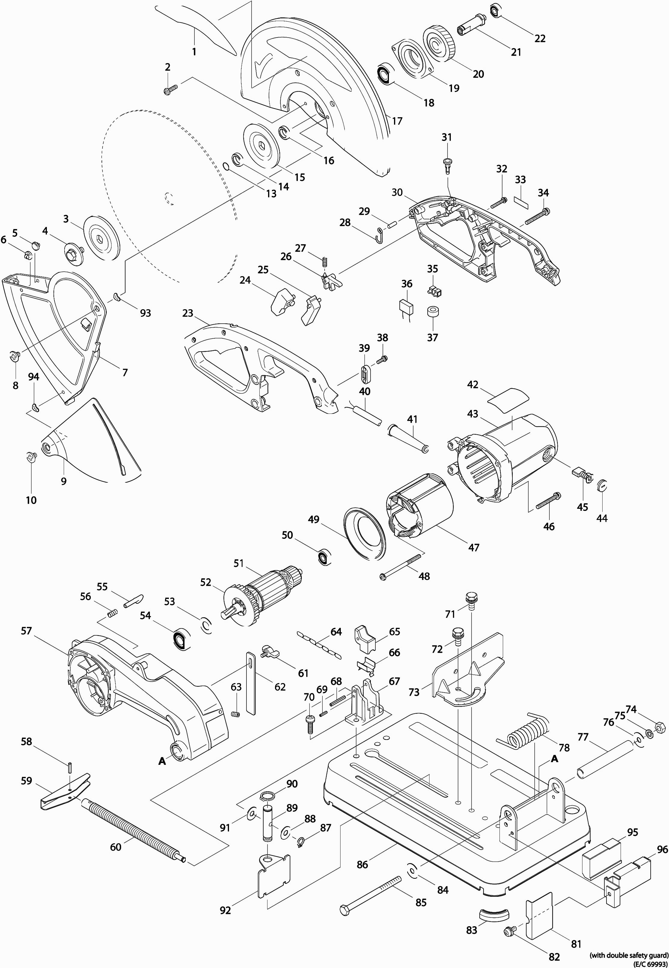 Onderdelen lijst van de Makita MT240