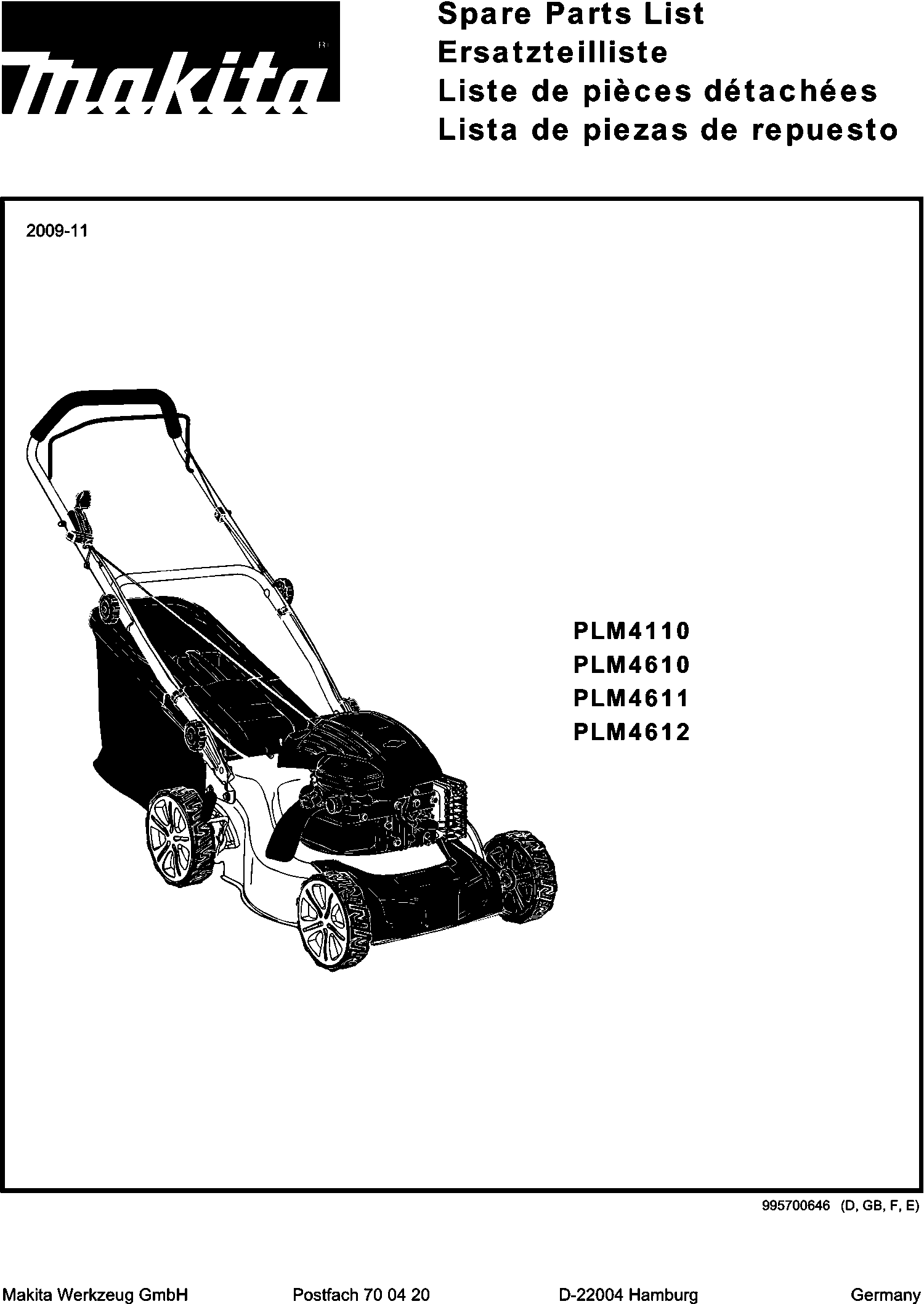Onderdelen lijst van de Makita PLM4611
