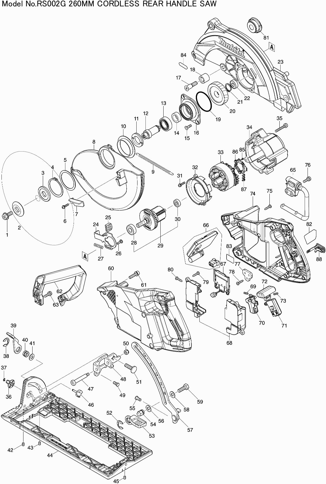 Onderdelen lijst van de Makita RS002G