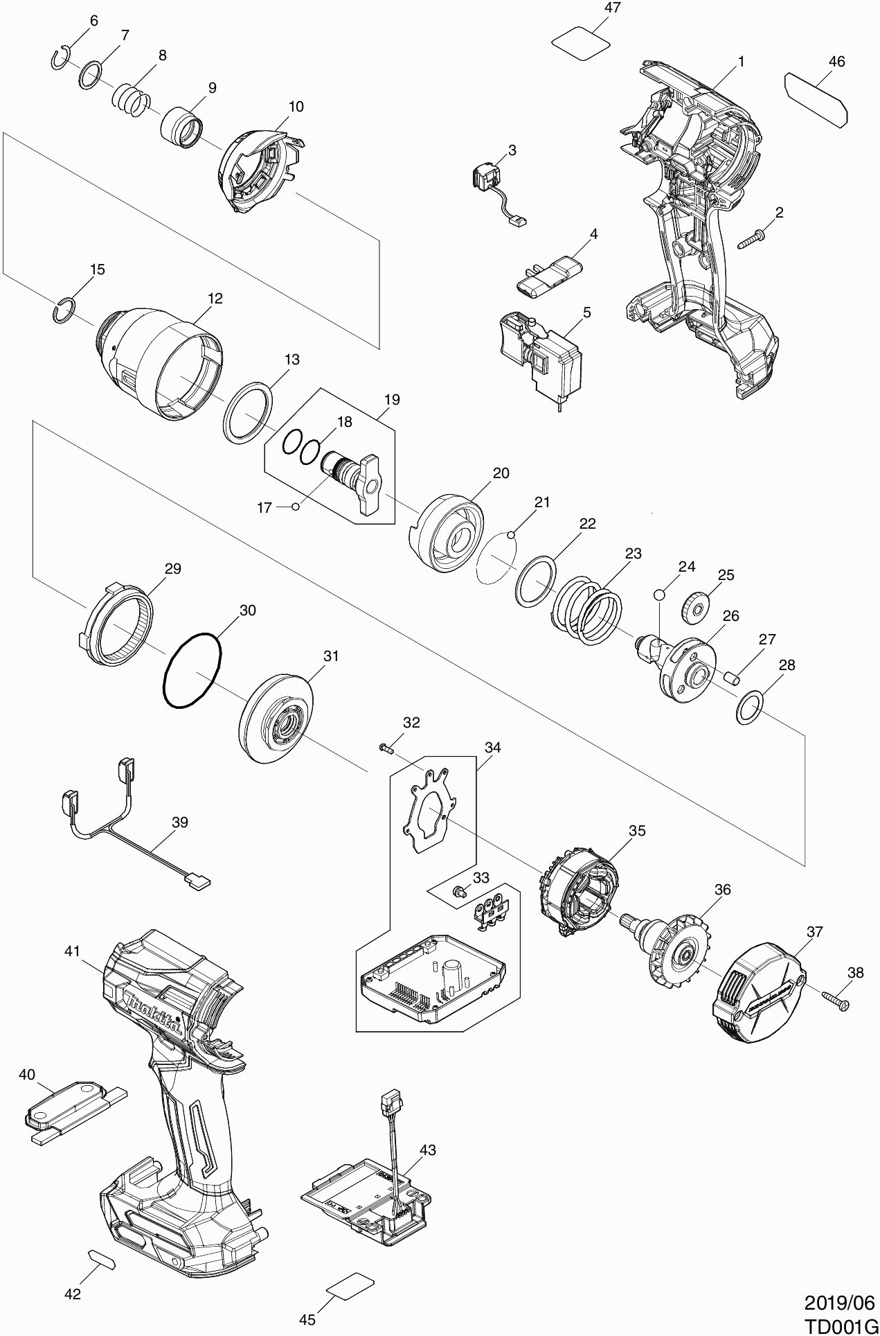 Onderdelen lijst van de Makita TD001G