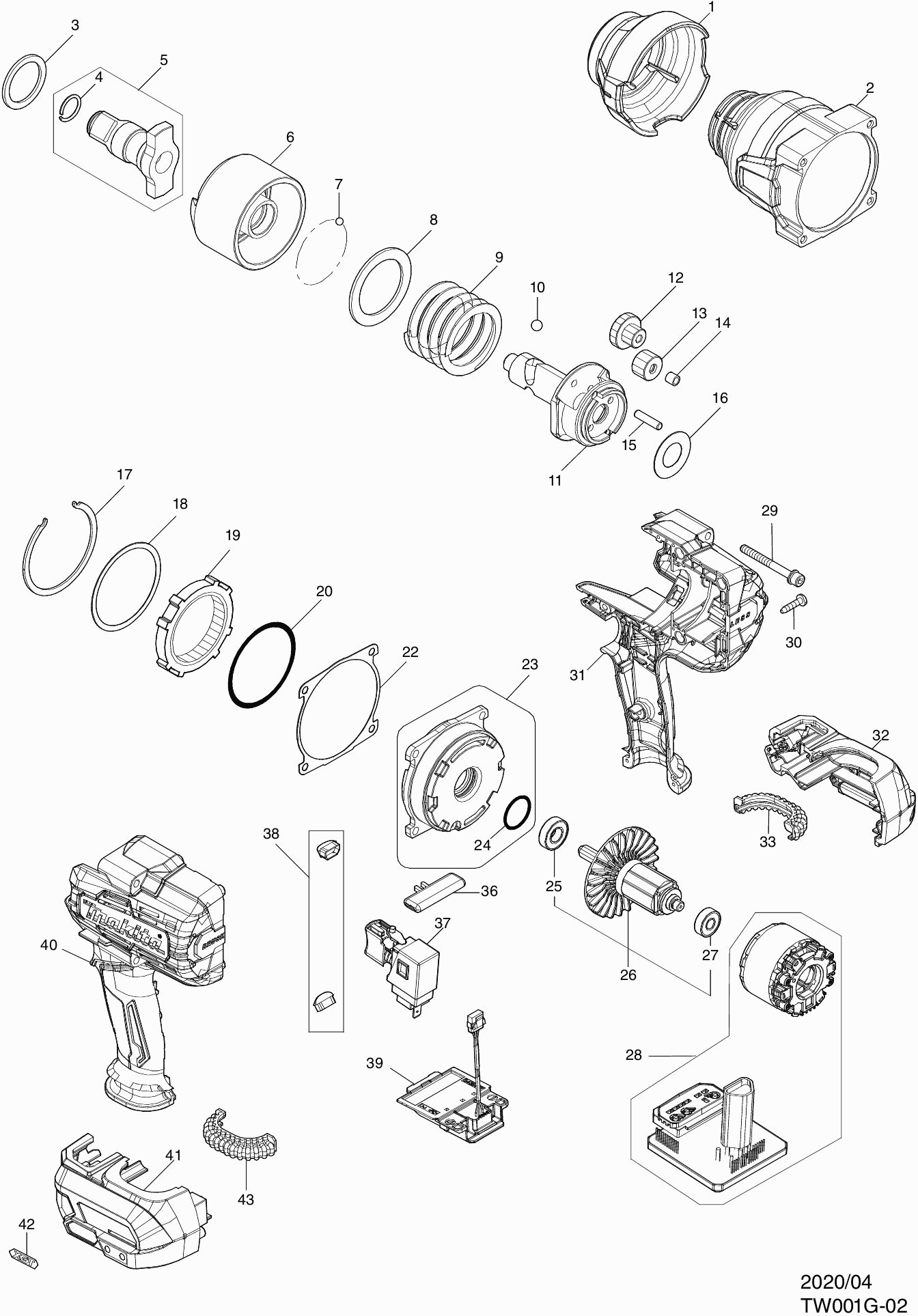 Onderdelen lijst van de Makita TW001G