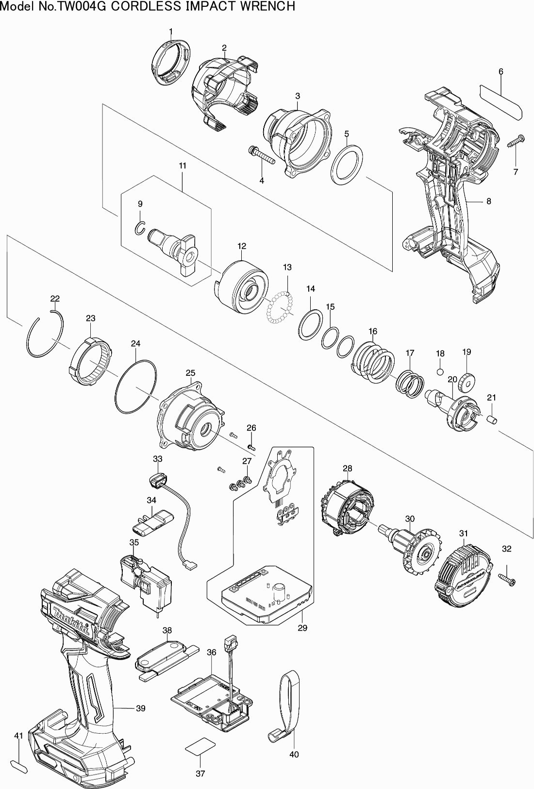 Onderdelen lijst van de Makita TW004G