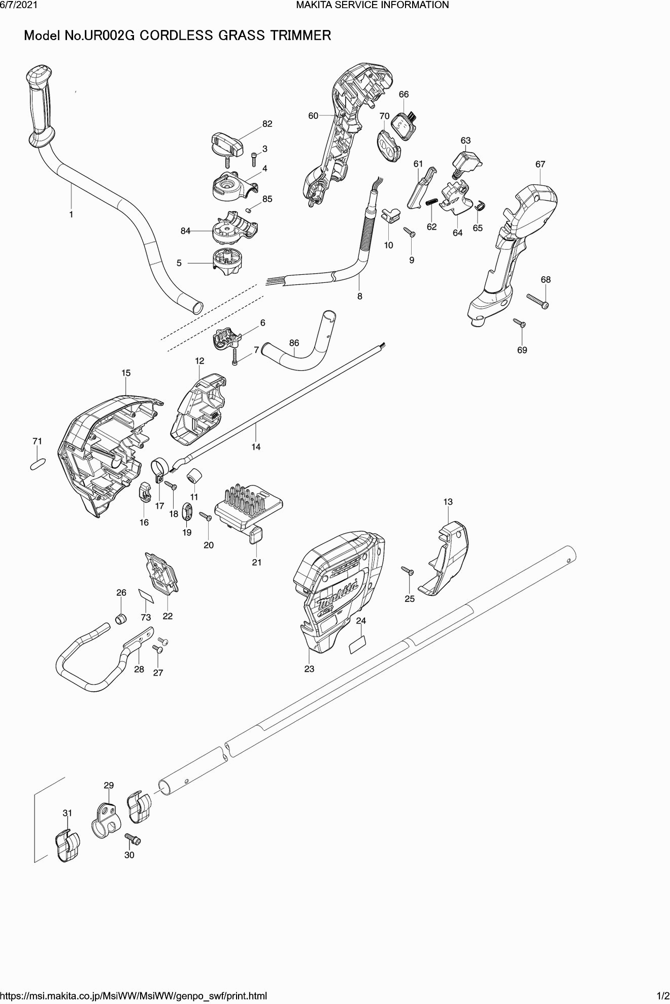 Hier vindt u alle beschikbare onderdelen en tekeningen van de 'Makita UR002G'. Vanaf hier kunt u direct alle gewenste onderdelen bestellen. Vele onderdelen moeten bij de fabrikant besteld worden, dit duurt afhankelijk van het merk, één tot vier weken. Alle informatie die we hebben, staat op onze website, wij kunnen u geen advies geven over wat u nodig heeft, daarvoor zult u de machine ter reparatie in moeten leveren. Let bij het bestellen op het volgende: