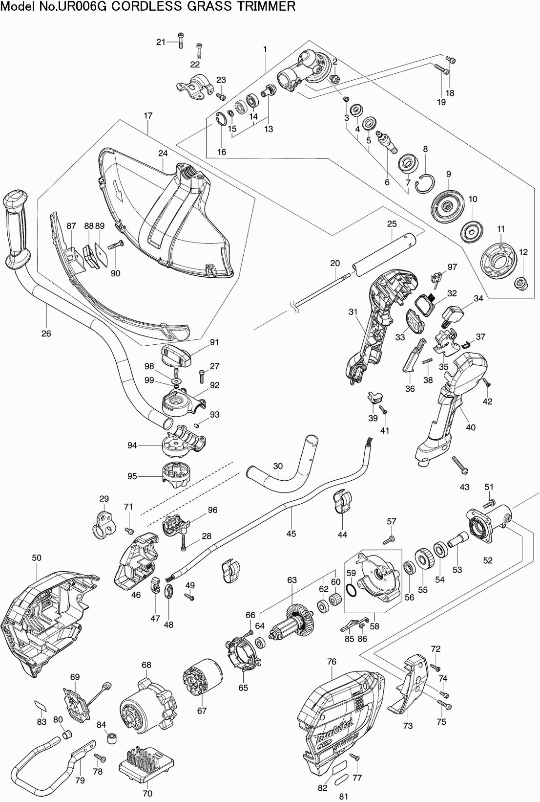 Onderdelen lijst van de Makita UR006G
