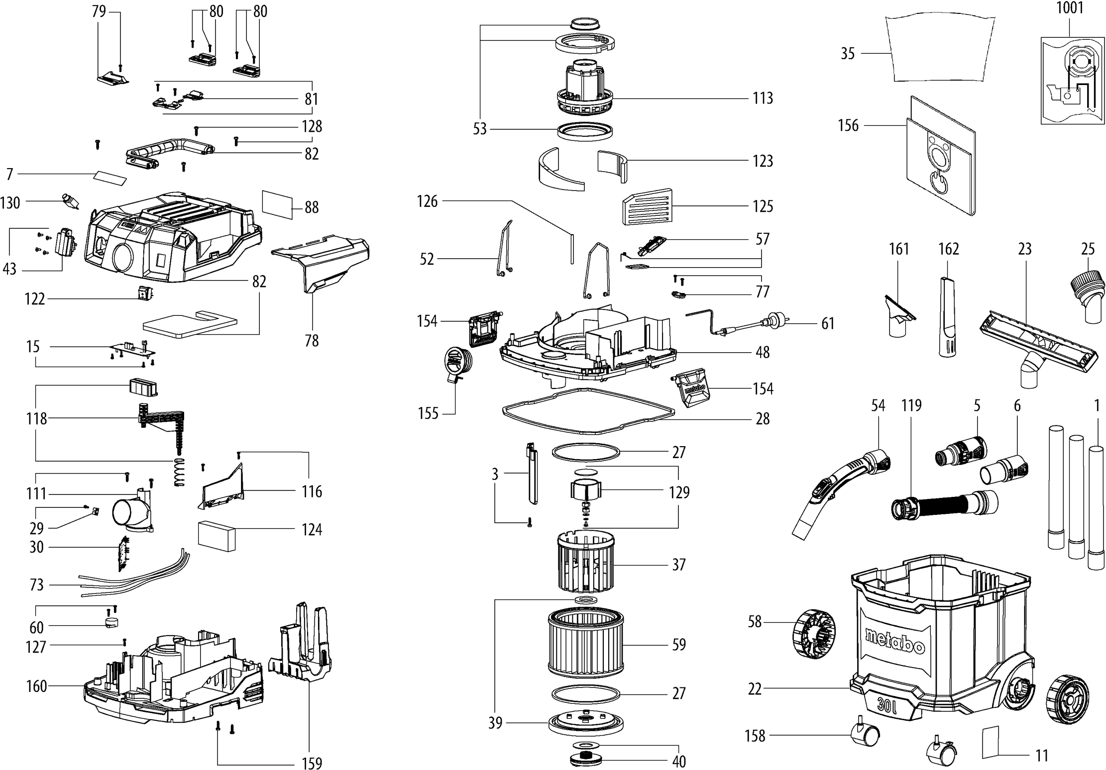 Hier vindt u alle beschikbare onderdelen en tekeningen van de 'Metabo 02087000 ( ASA30MPC )'. Vanaf hier kunt u direct alle gewenste onderdelen bestellen. Vele onderdelen moeten bij de fabrikant besteld worden, dit duurt afhankelijk van het merk, één tot vier weken. Alle informatie die we hebben, staat op onze website, wij kunnen u geen advies geven over wat u nodig heeft, daarvoor zult u de machine ter reparatie in moeten leveren. Let bij het bestellen op het volgende:
