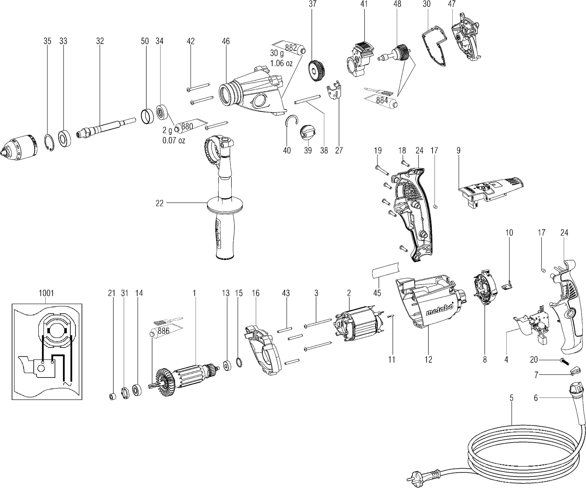 Onderdelen lijst van de Metabo 00593000 ( BE1300QUICK )