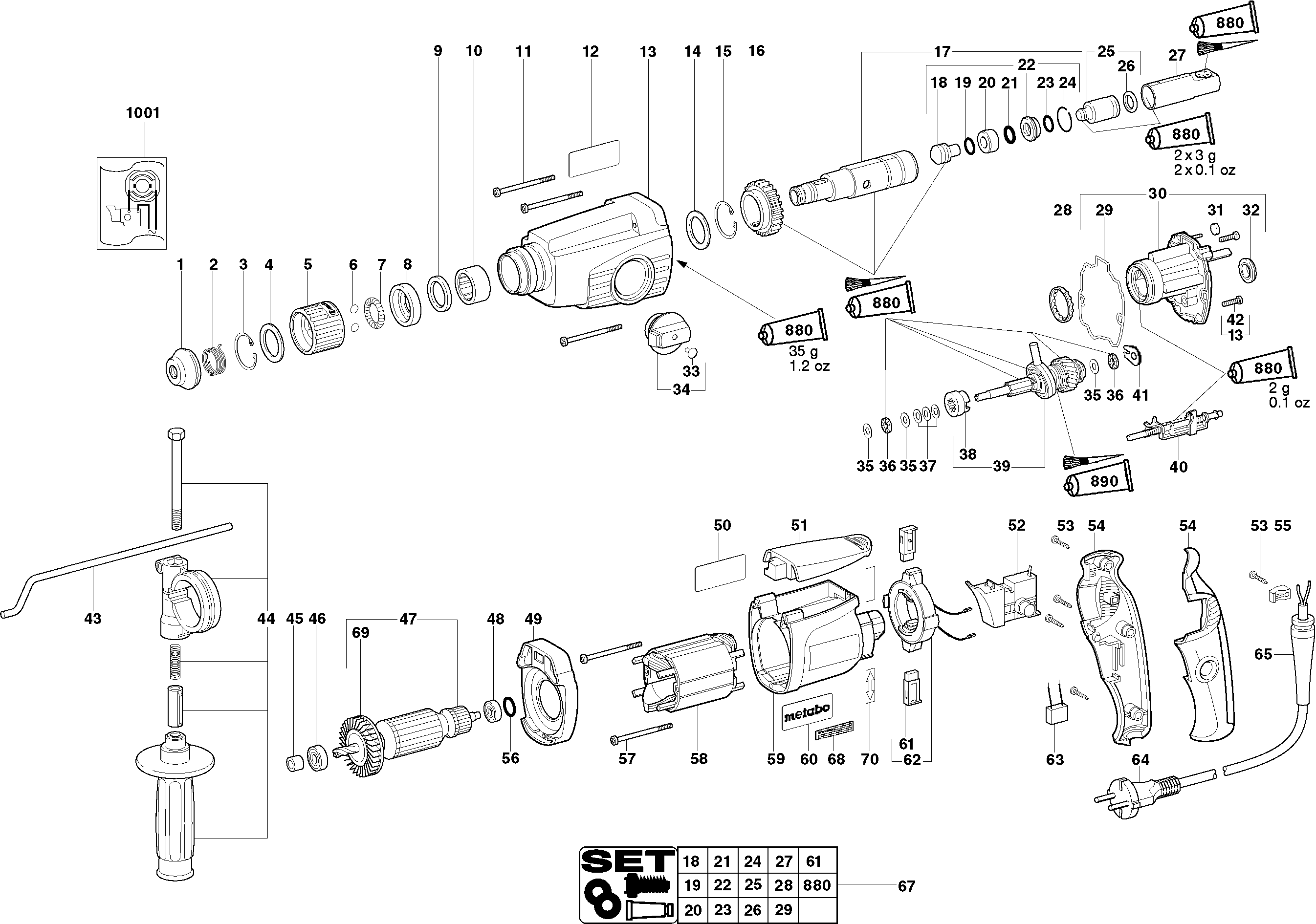 Onderdelen lijst van de Metabo 00242000 ( BHE22 )