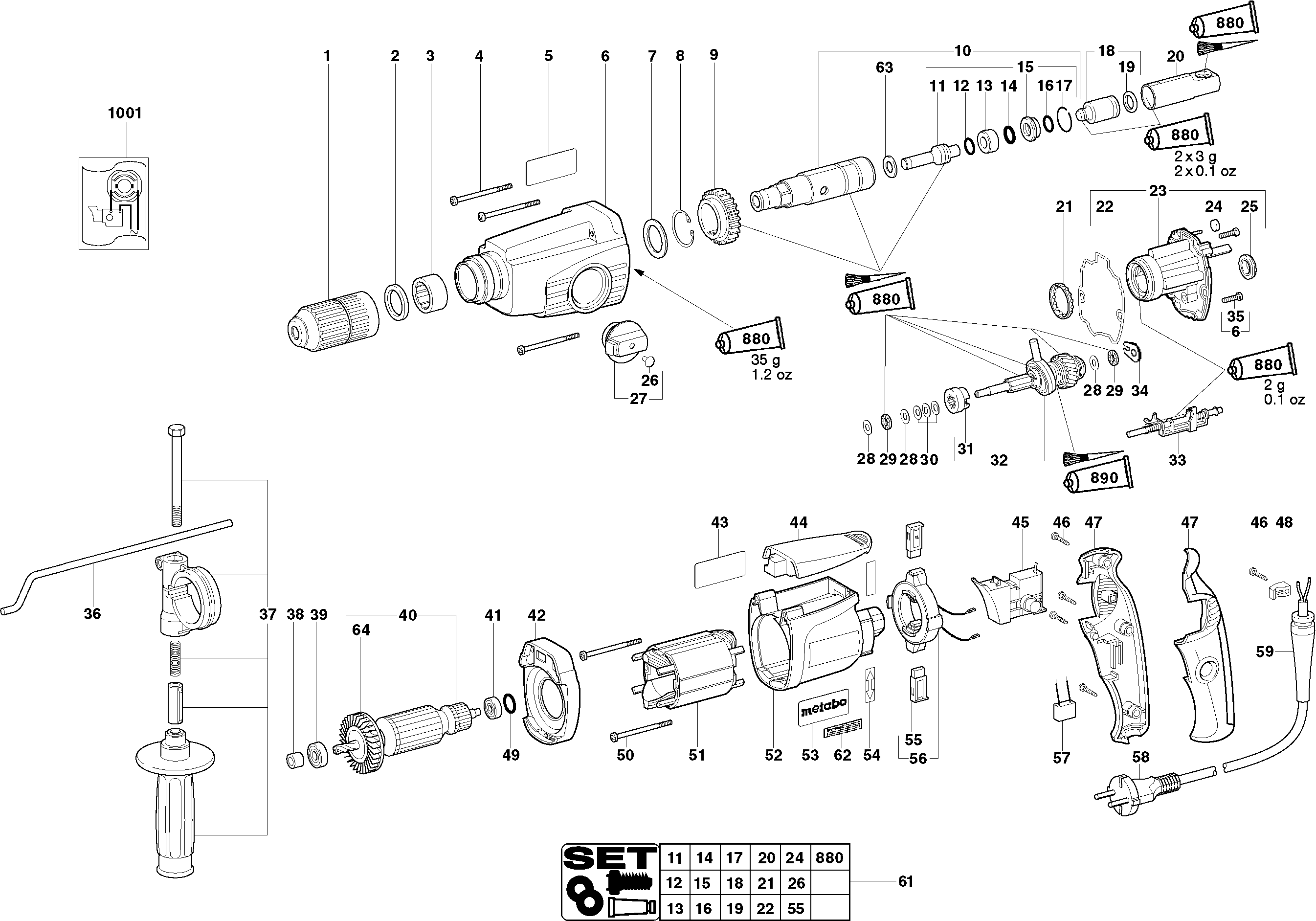 Onderdelen lijst van de Metabo 00243000 ( BHE24 )