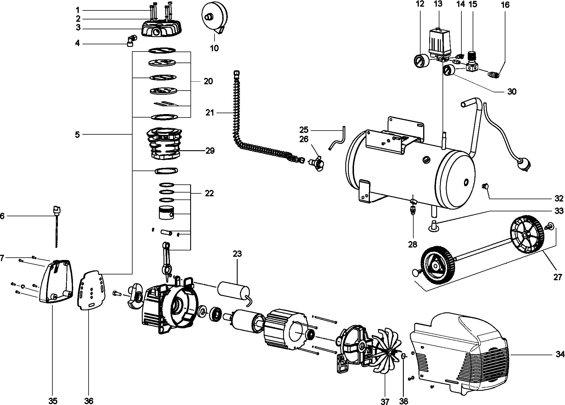 Onderdelen lijst van de Metabo 0230025500-10 ( CLASSICAIR255 )