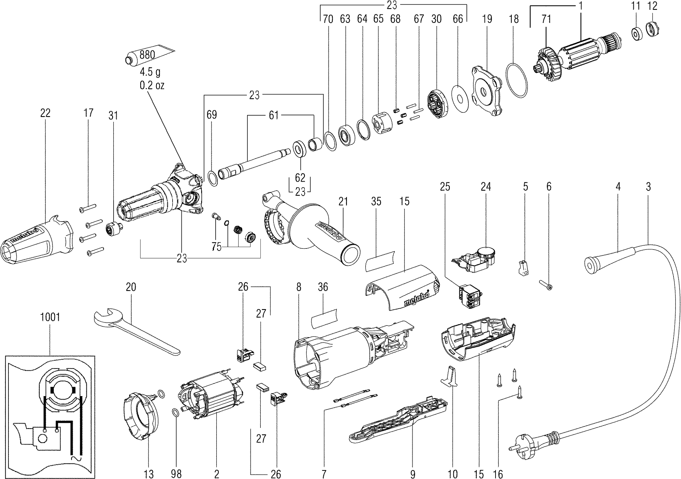 Onderdelen lijst van de Metabo 00627000 ( GEP950GPLUS )