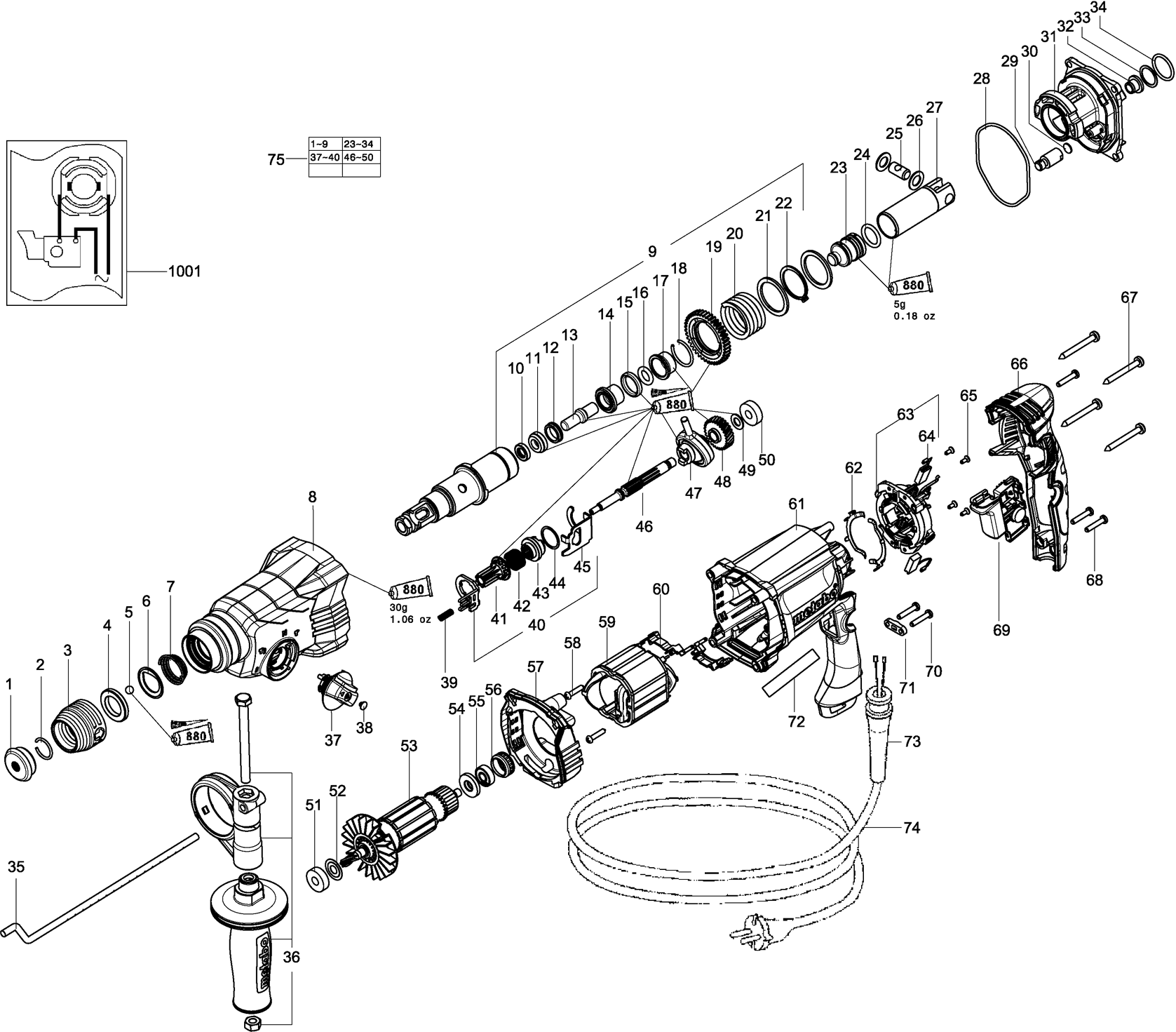 Onderdelen lijst van de Metabo 01739000 ( KHE2845 )