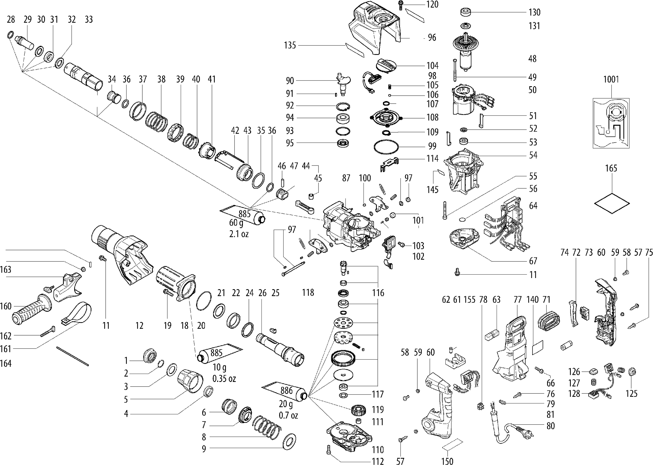 Onderdelen lijst van de Metabo 00765000 ( KHEV5-40BL )