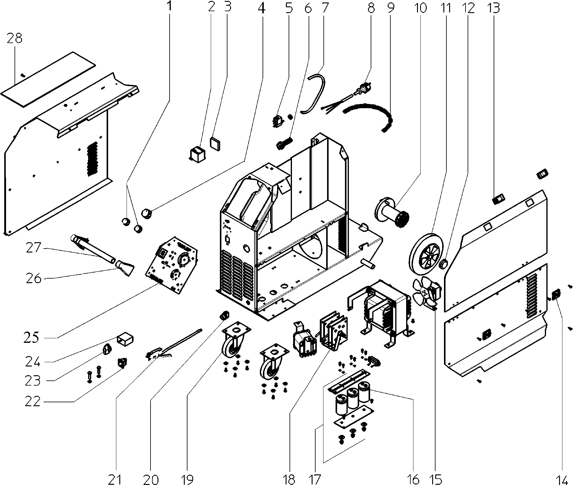 Onderdelen lijst van de Metabo 0021031700-11 ( MIG-MAG150-20XT )