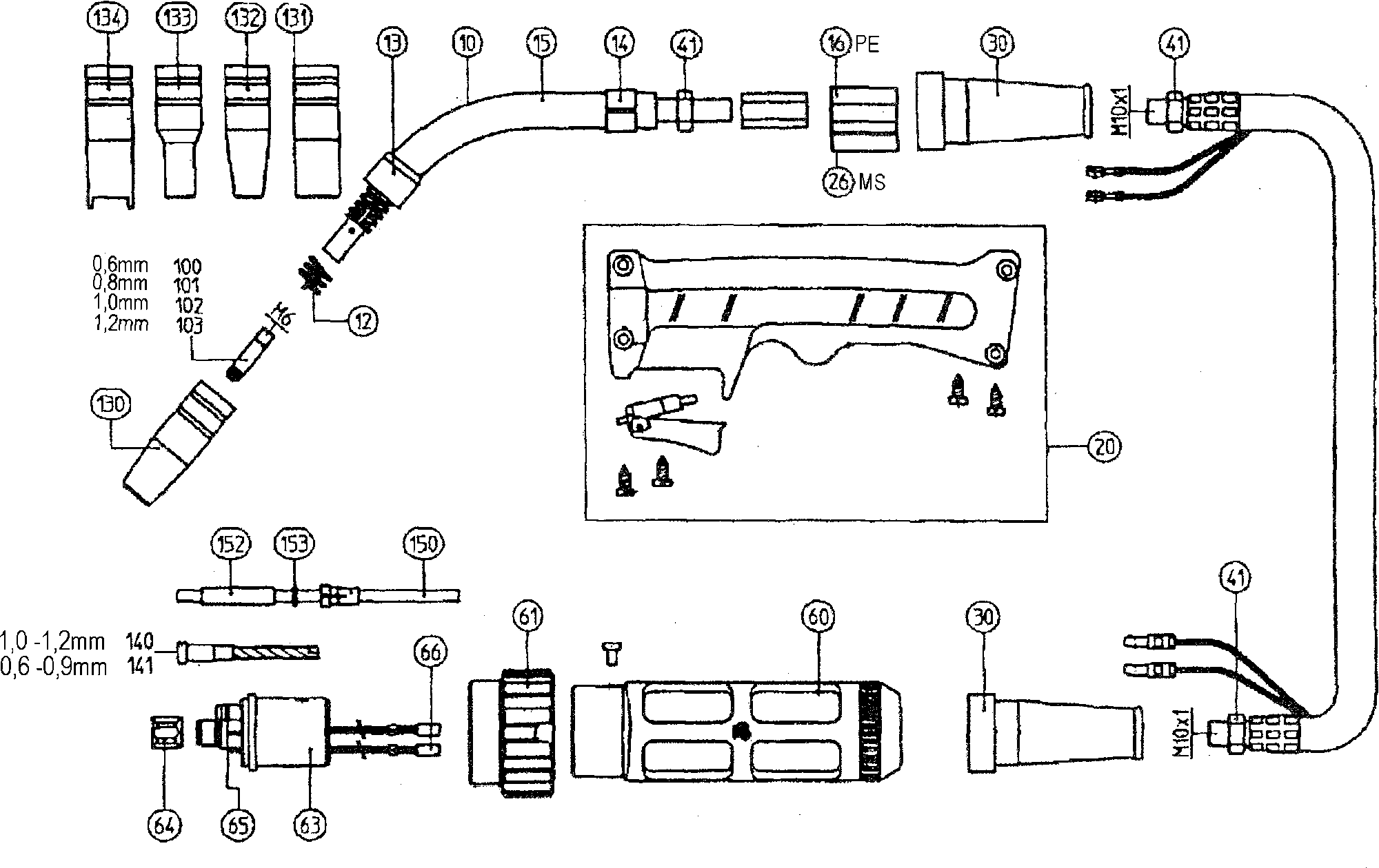 Onderdelen lijst van de Metabo 0902009965-10 ( MIG-MAGWELDINGTORCHSB15-5KZ2 )