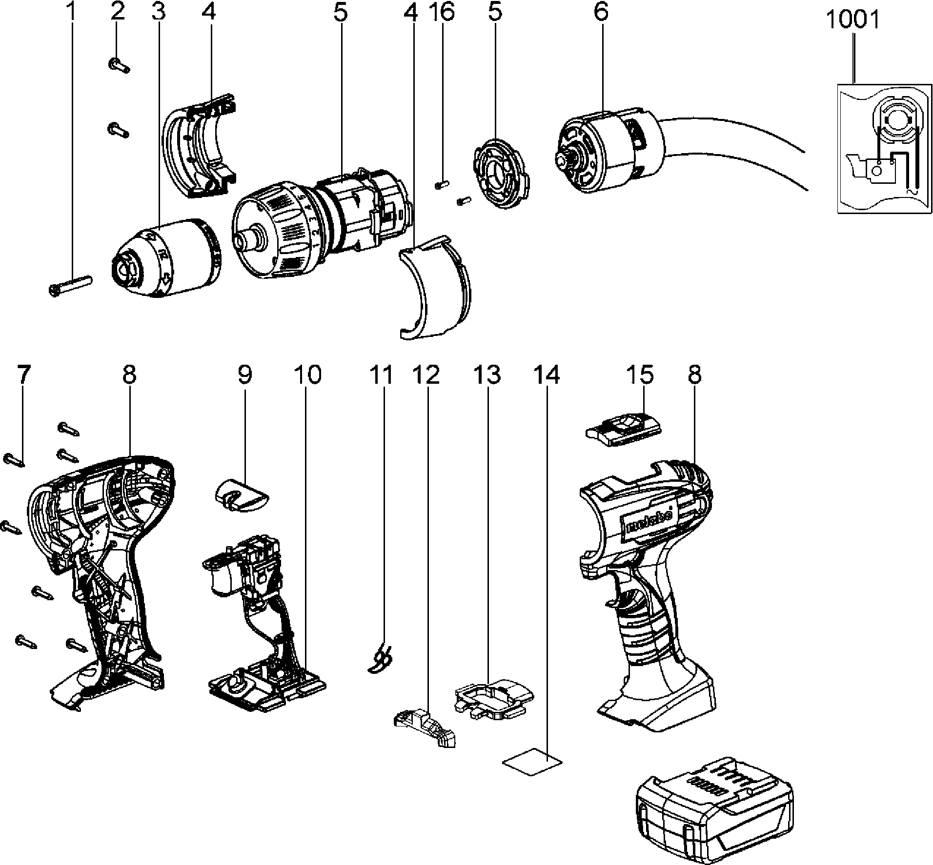 Onderdelen lijst van de Metabo 02190000 ( SB18LI )
