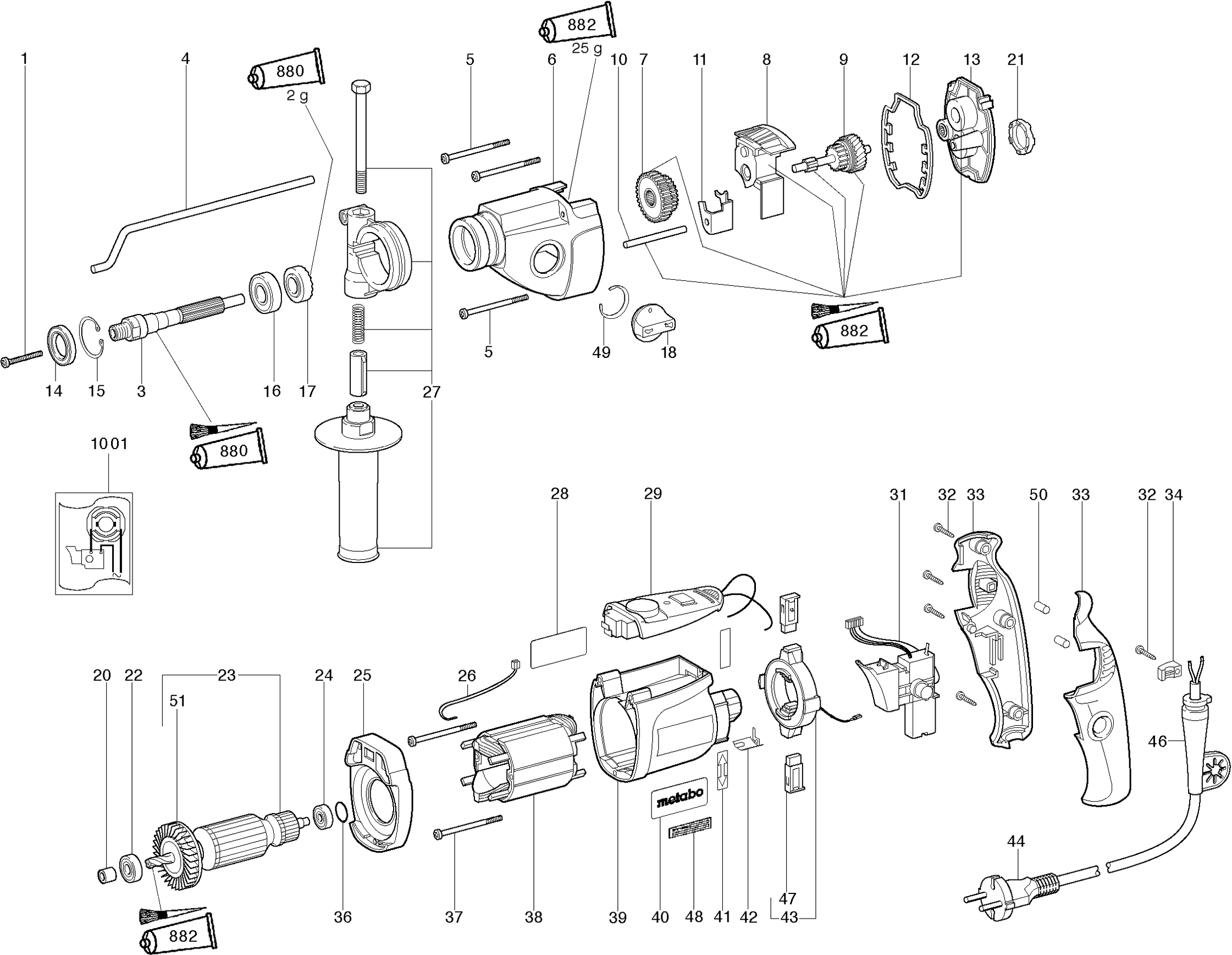 Onderdelen lijst van de Metabo 01008000 ( SBE1010PLUS )
