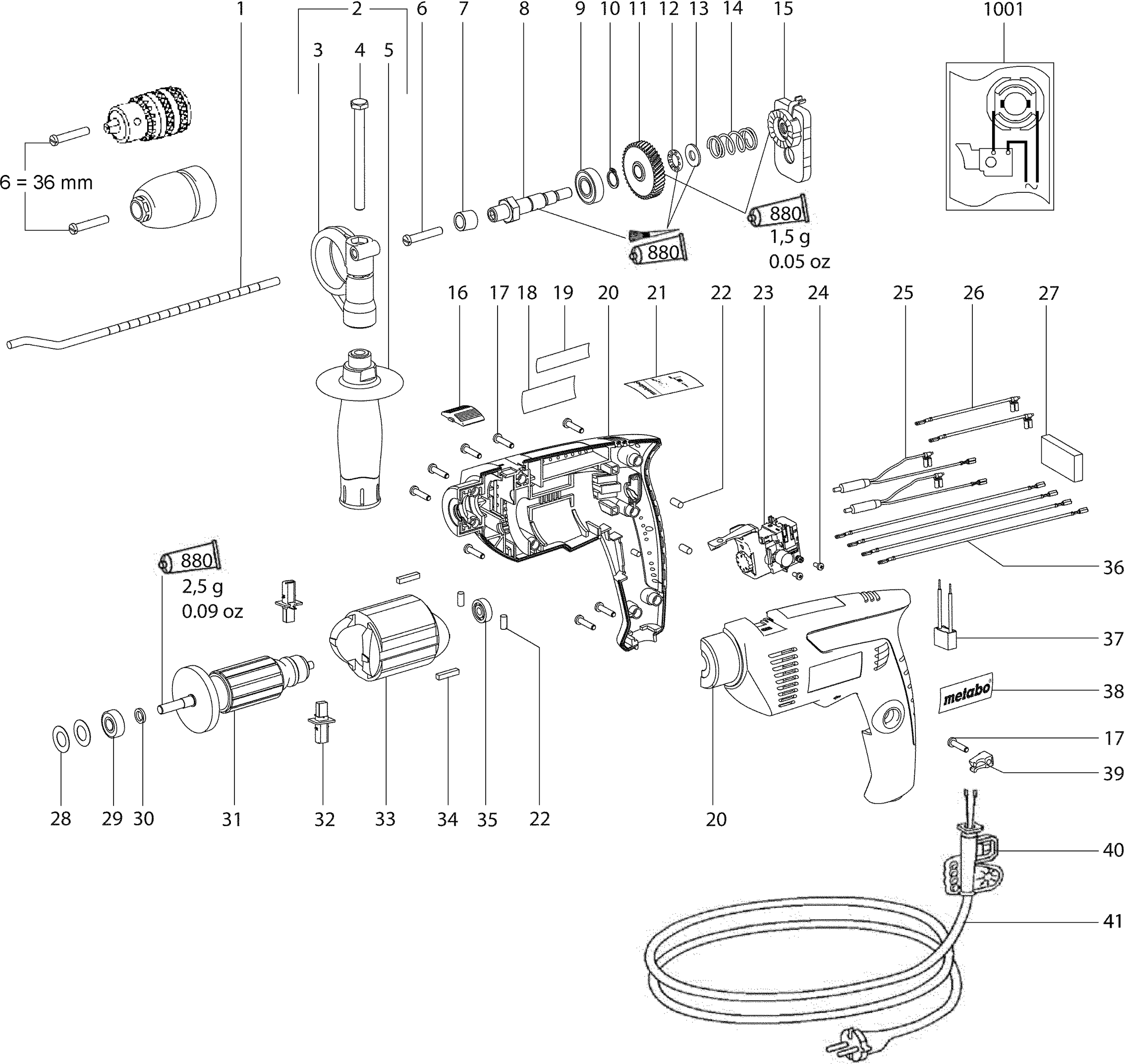 Onderdelen lijst van de Metabo 01160000 ( SBE561 )