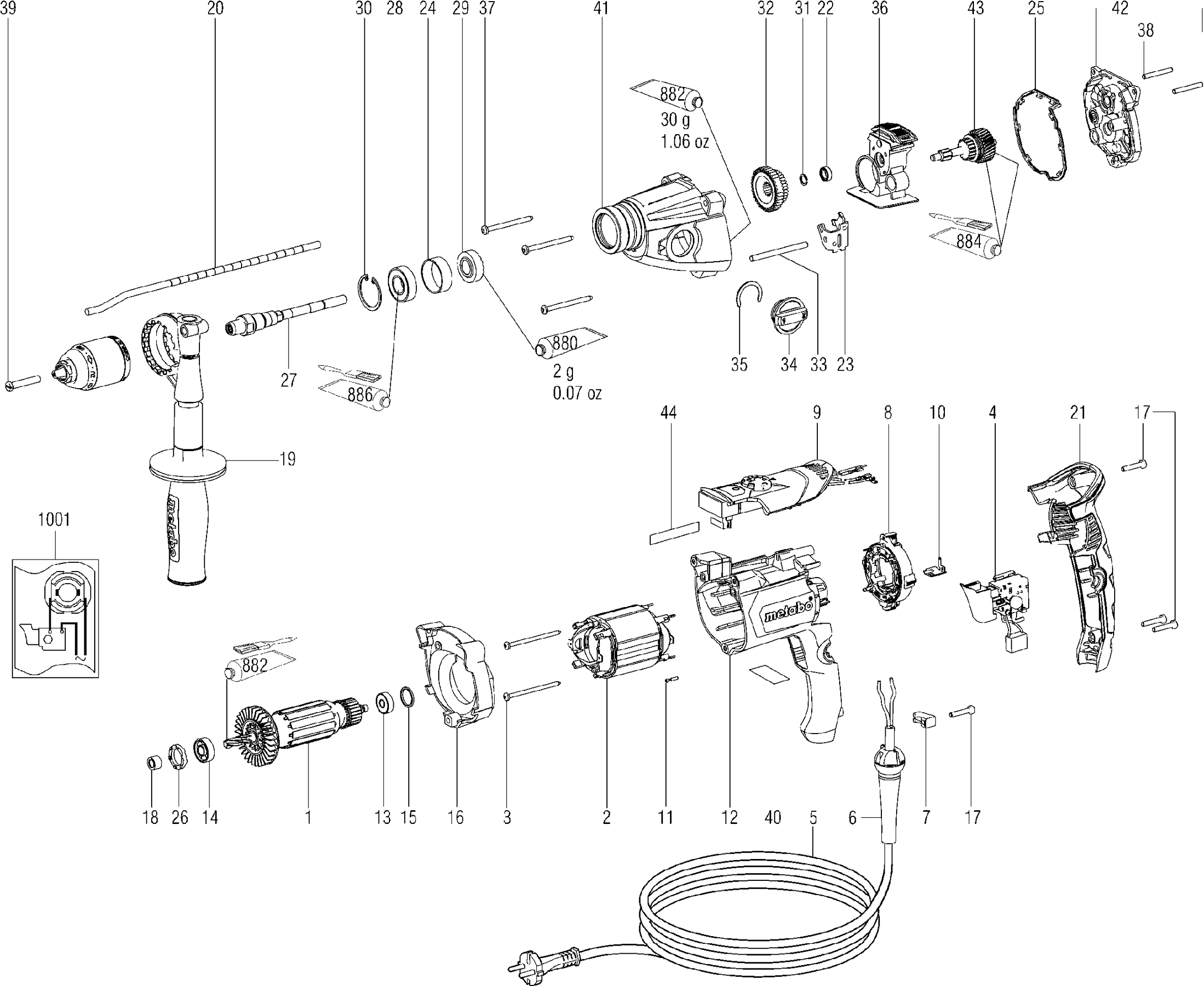 Onderdelen lijst van de Metabo 00784000 ( SBEV1100-2S )