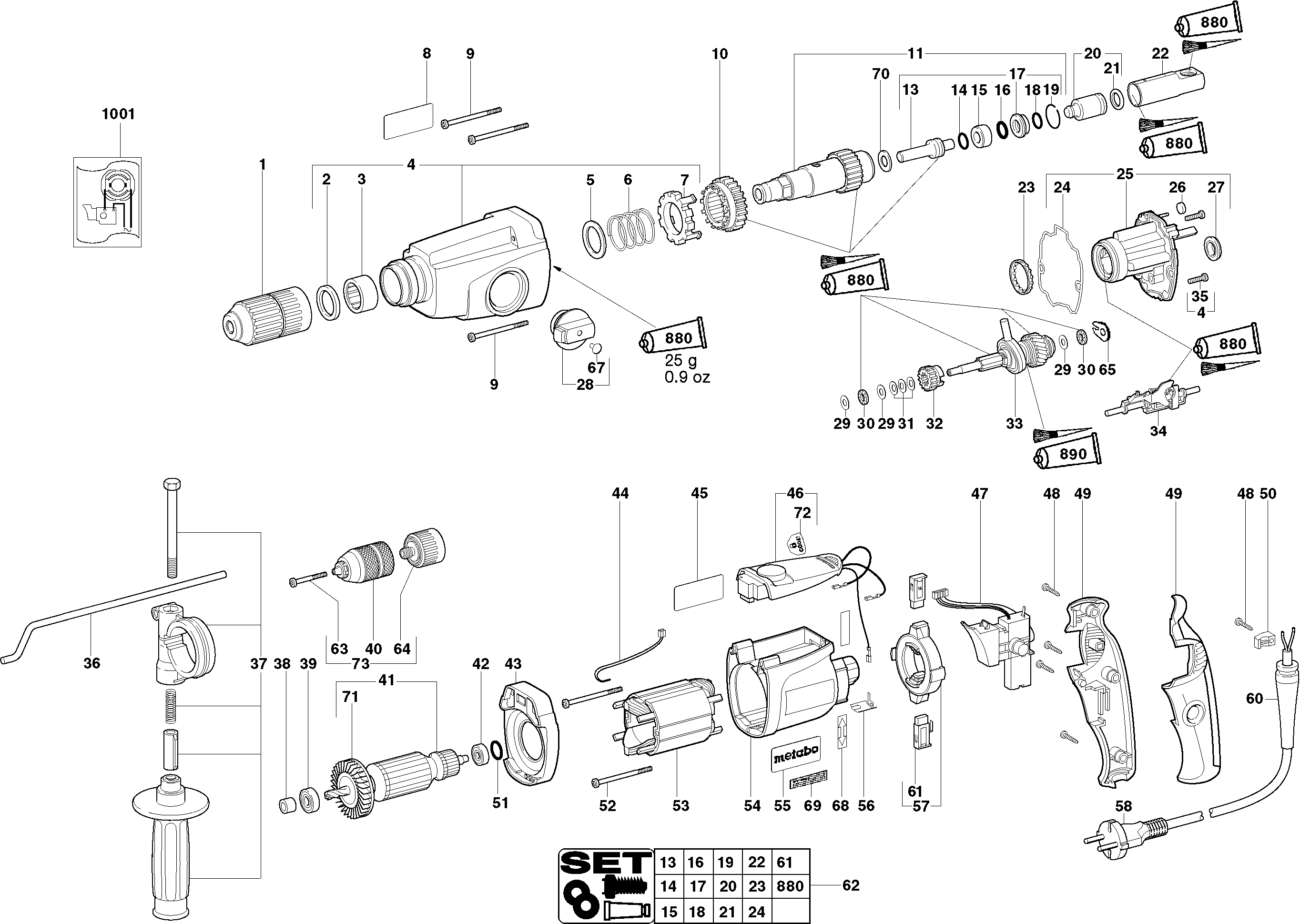 Onderdelen lijst van de Metabo 00361000 ( UHE28MULTI )