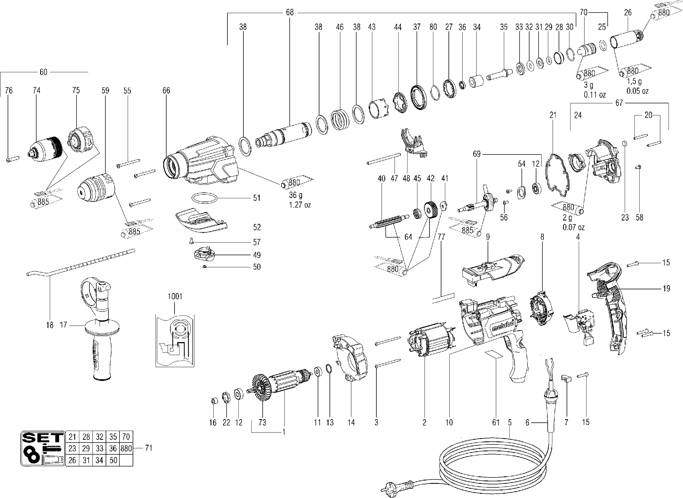 Onderdelen lijst van de Metabo 00713000 ( UHEV2860-2QUICK )