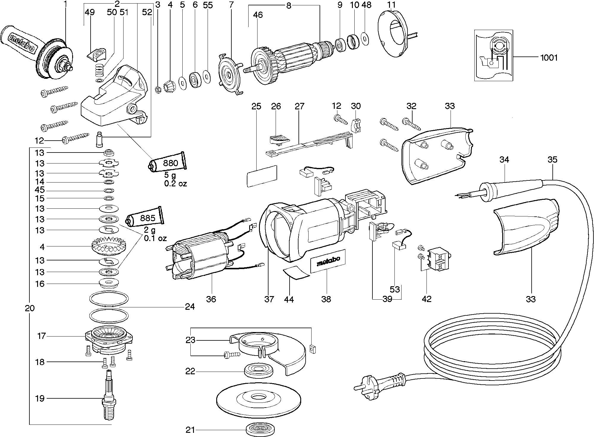 Onderdelen lijst van de Metabo 00725001 ( W7-125QUICK )