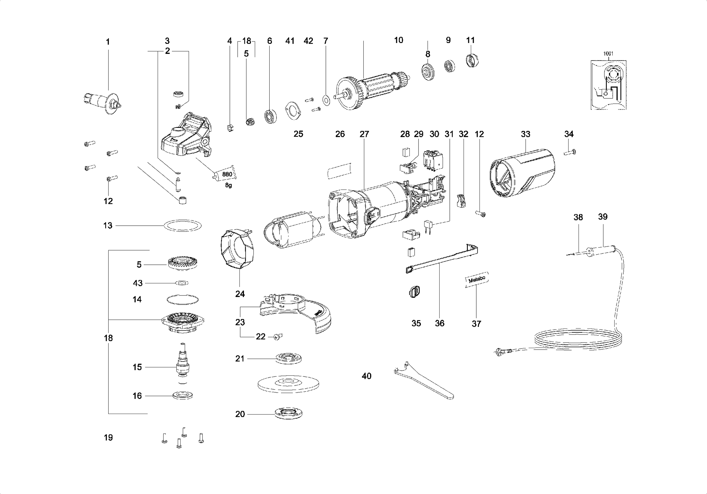 Onderdelen lijst van de Metabo 03605000 ( W750-125 )