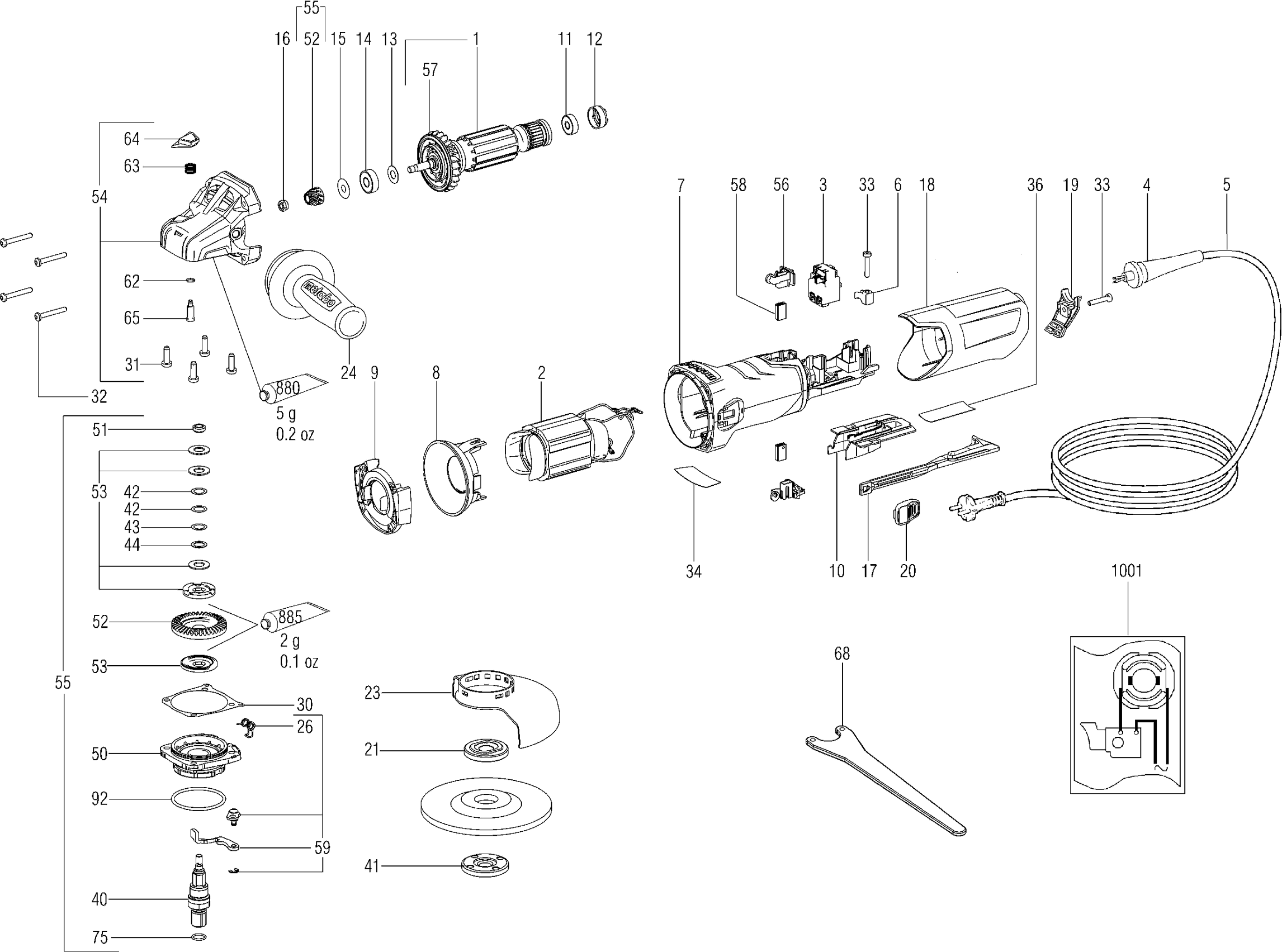Onderdelen lijst van de Metabo 00381000 ( W900-125 )