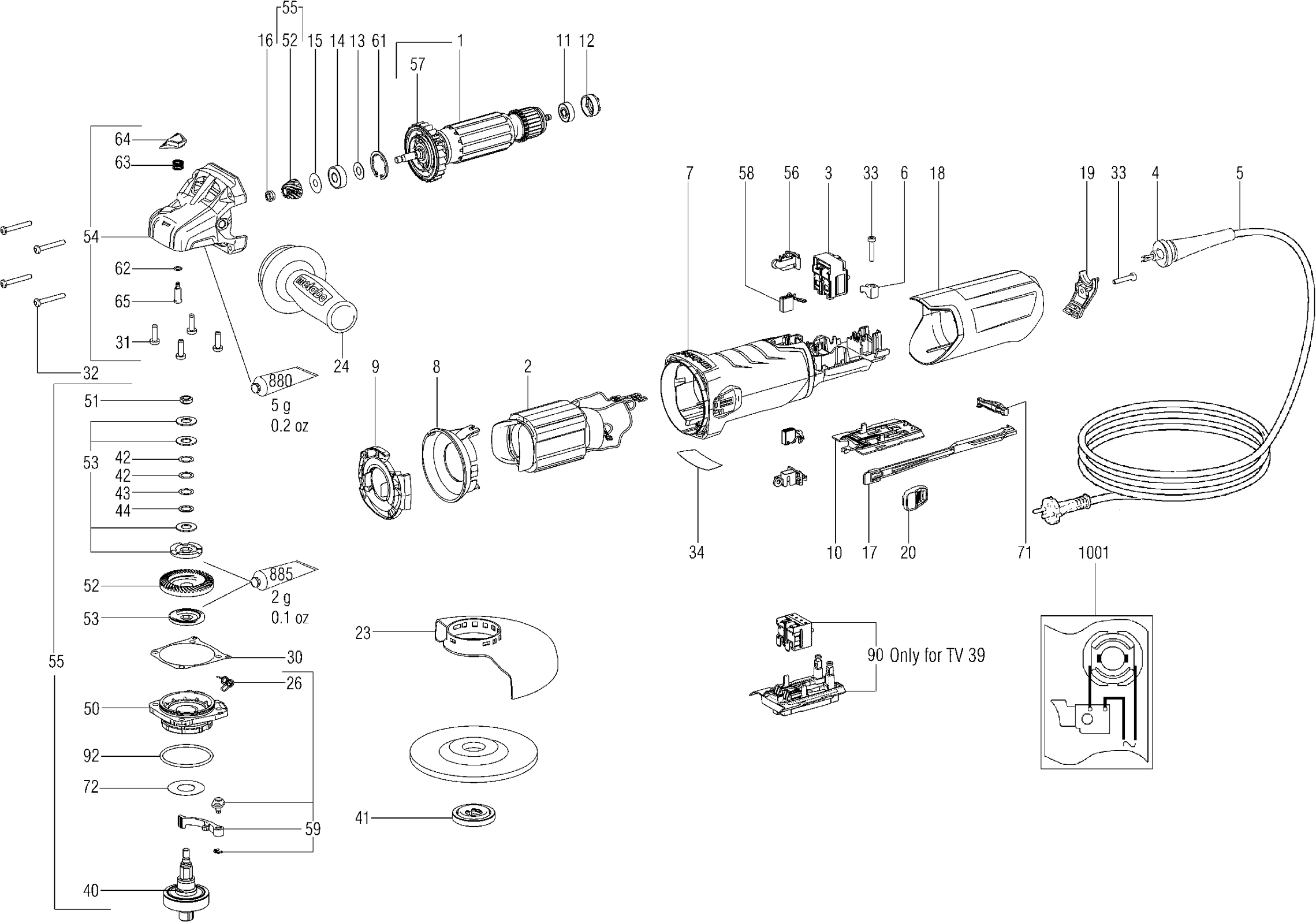 Onderdelen lijst van de Metabo 00422010 ( WA12-125QUICK )
