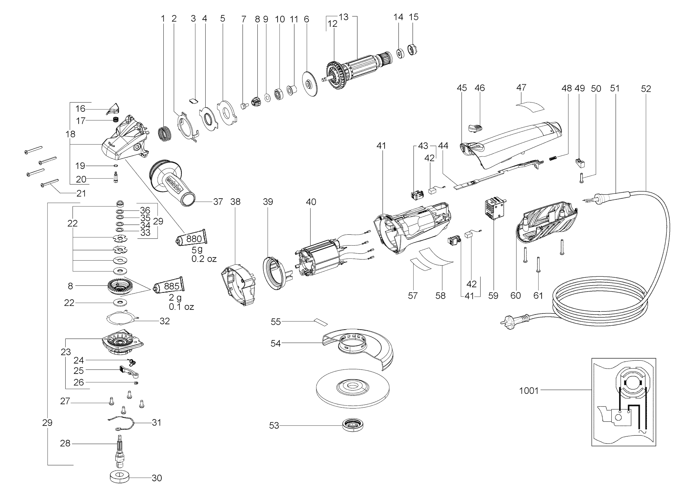 Onderdelen lijst van de Metabo 01103001 ( WBA11-125QUICK )