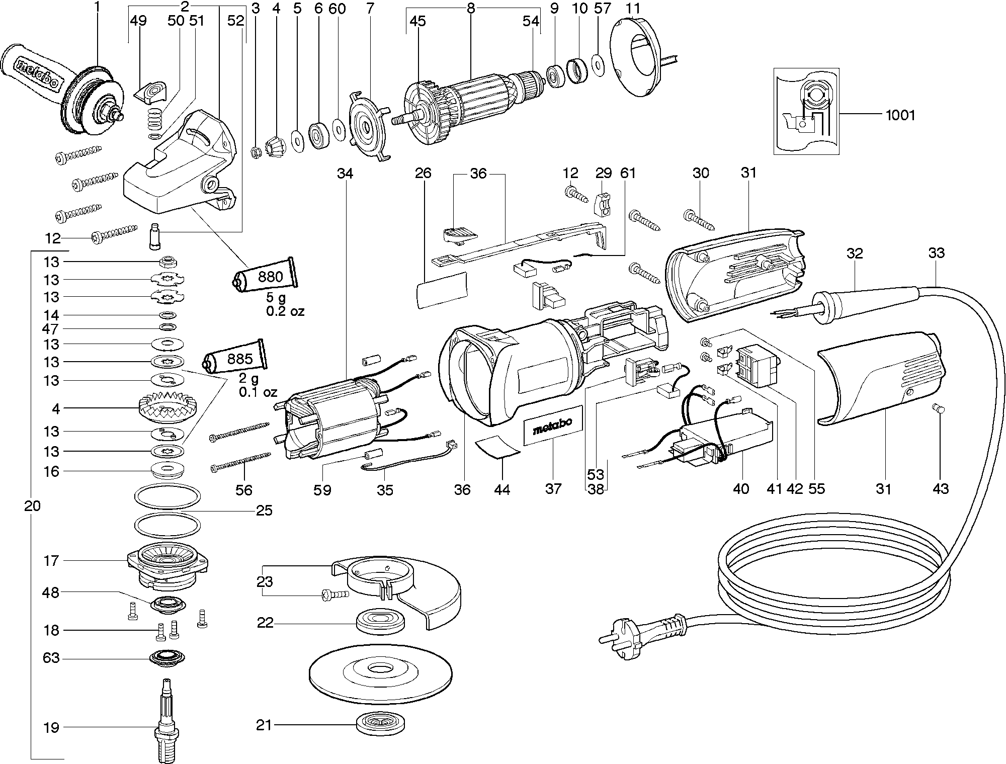 Onderdelen lijst van de Metabo 01450001 ( WE14-150PLUS )