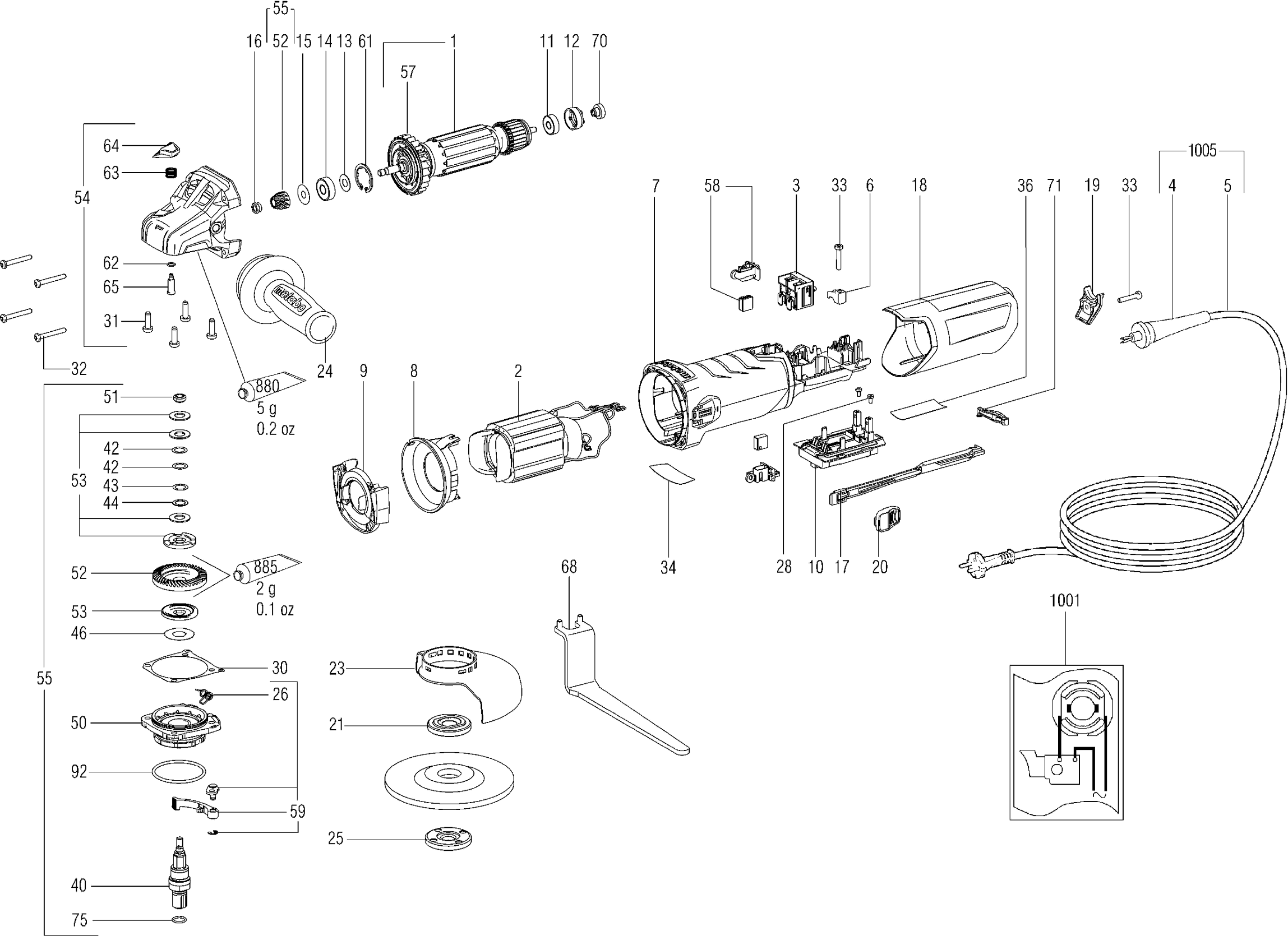 Onderdelen lijst van de Metabo 00465000 ( WE15-125HD )