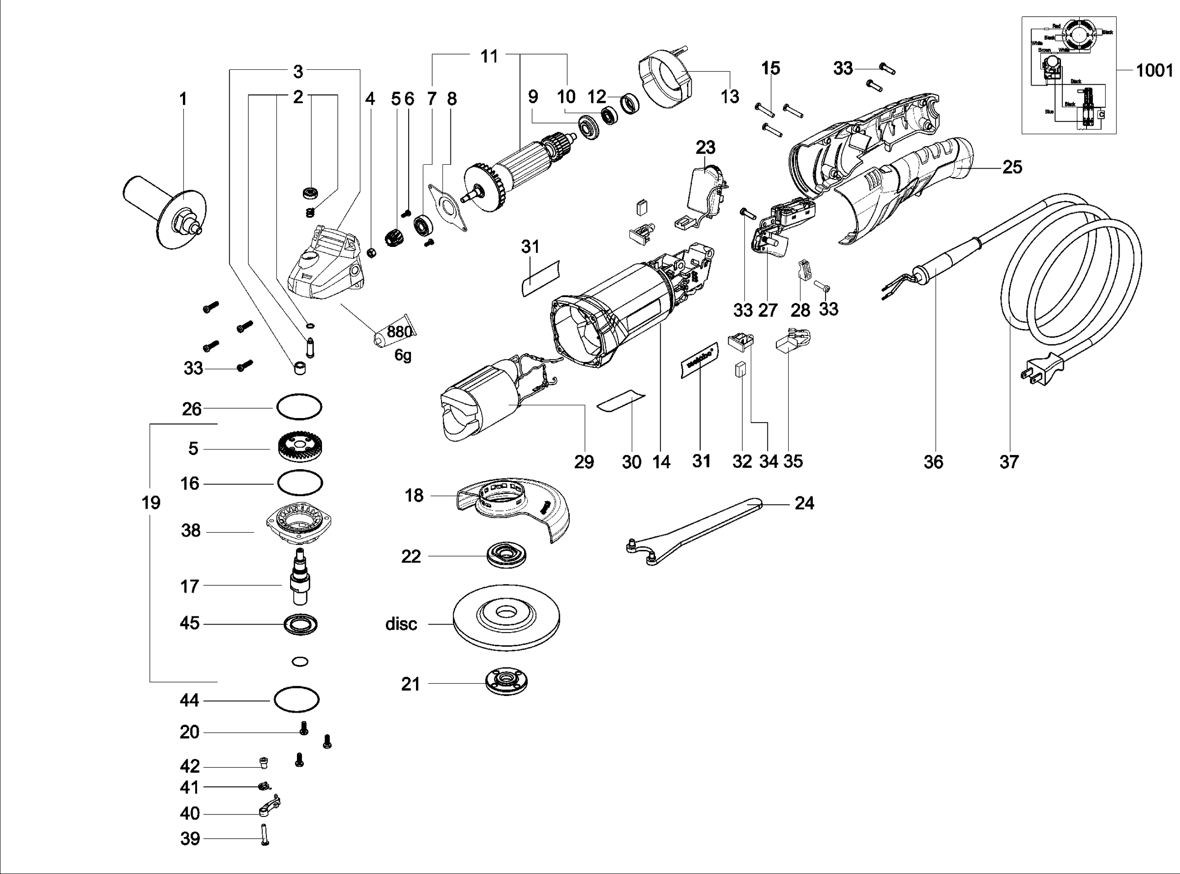 Onderdelen lijst van de Metabo 01242000 ( WE1500-150RT )