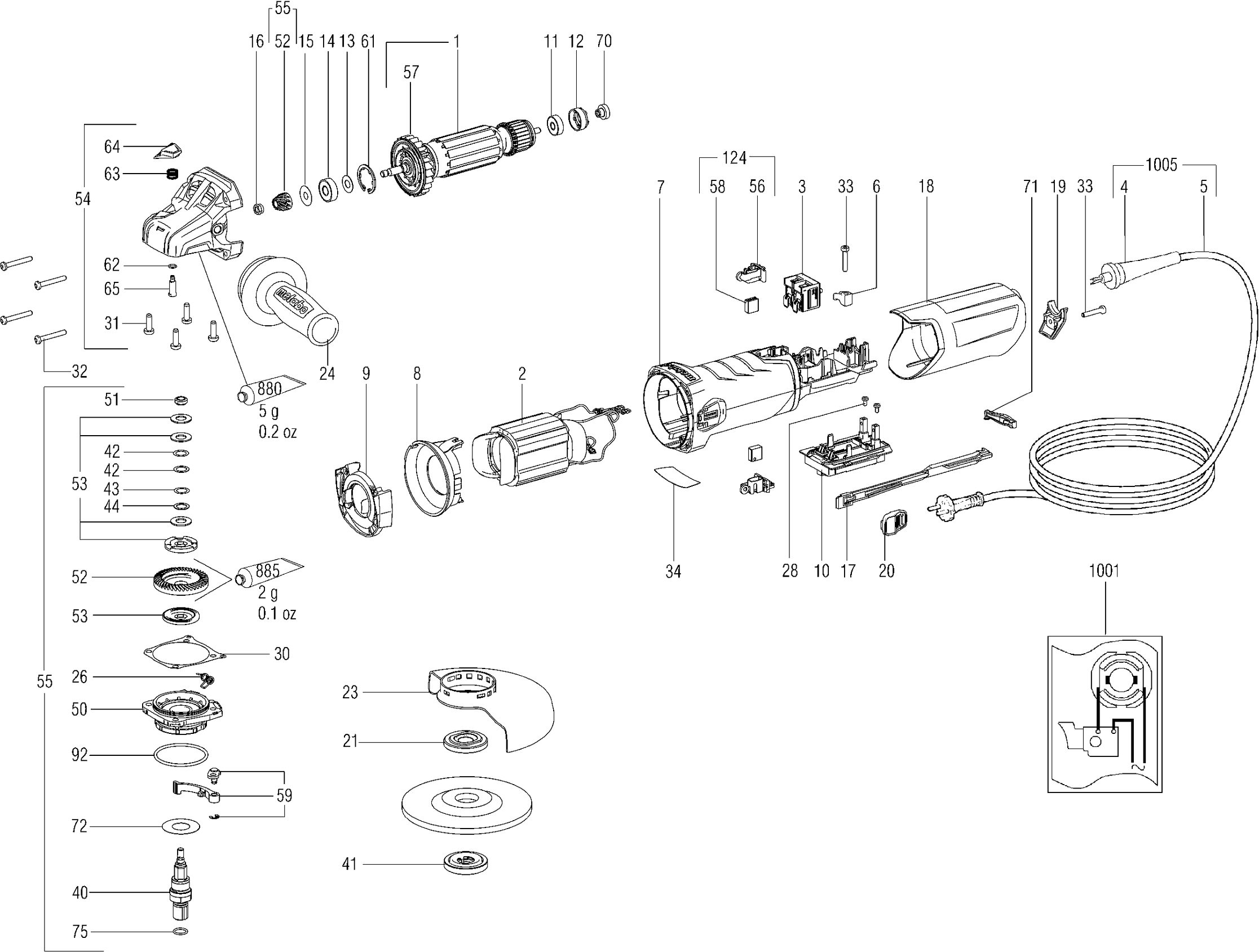 Onderdelen lijst van de Metabo 00515001 ( WE17-125QUICK )