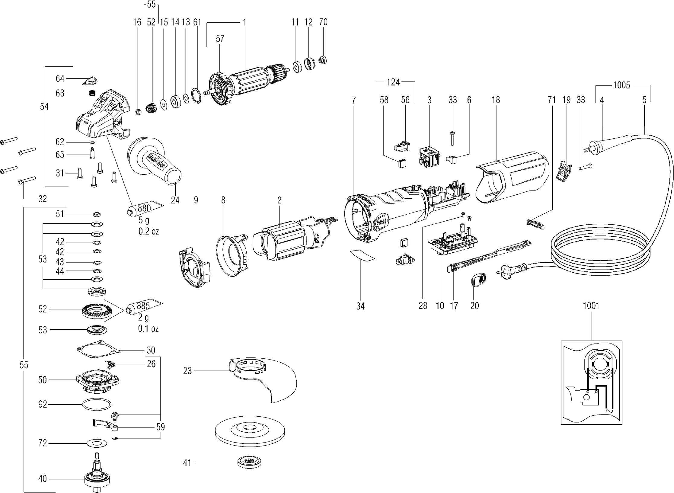 Onderdelen lijst van de Metabo 00492001 ( WEA15-125QUICK )