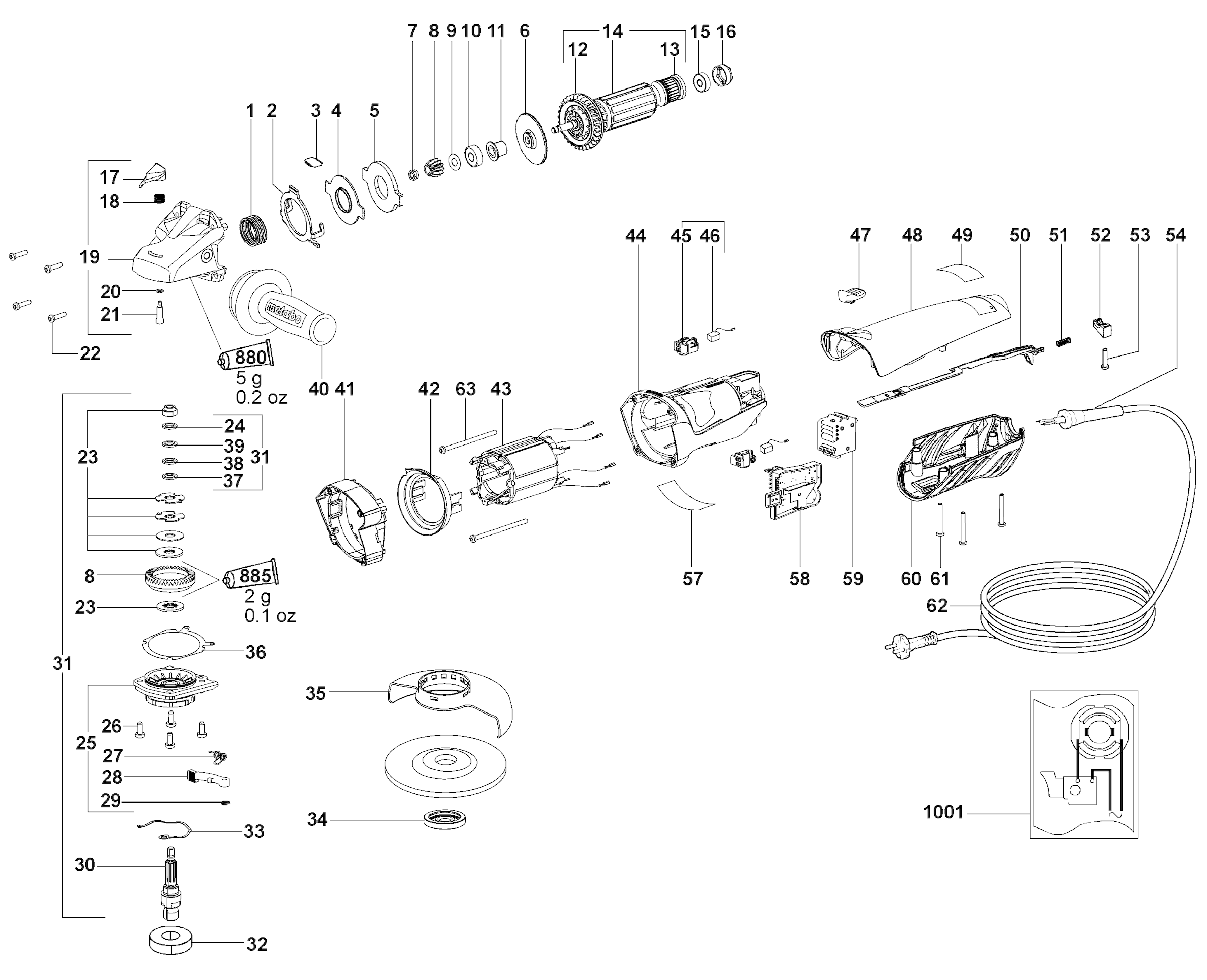 Onderdelen lijst van de Metabo 01107001 ( WEBA14-125QUICK )