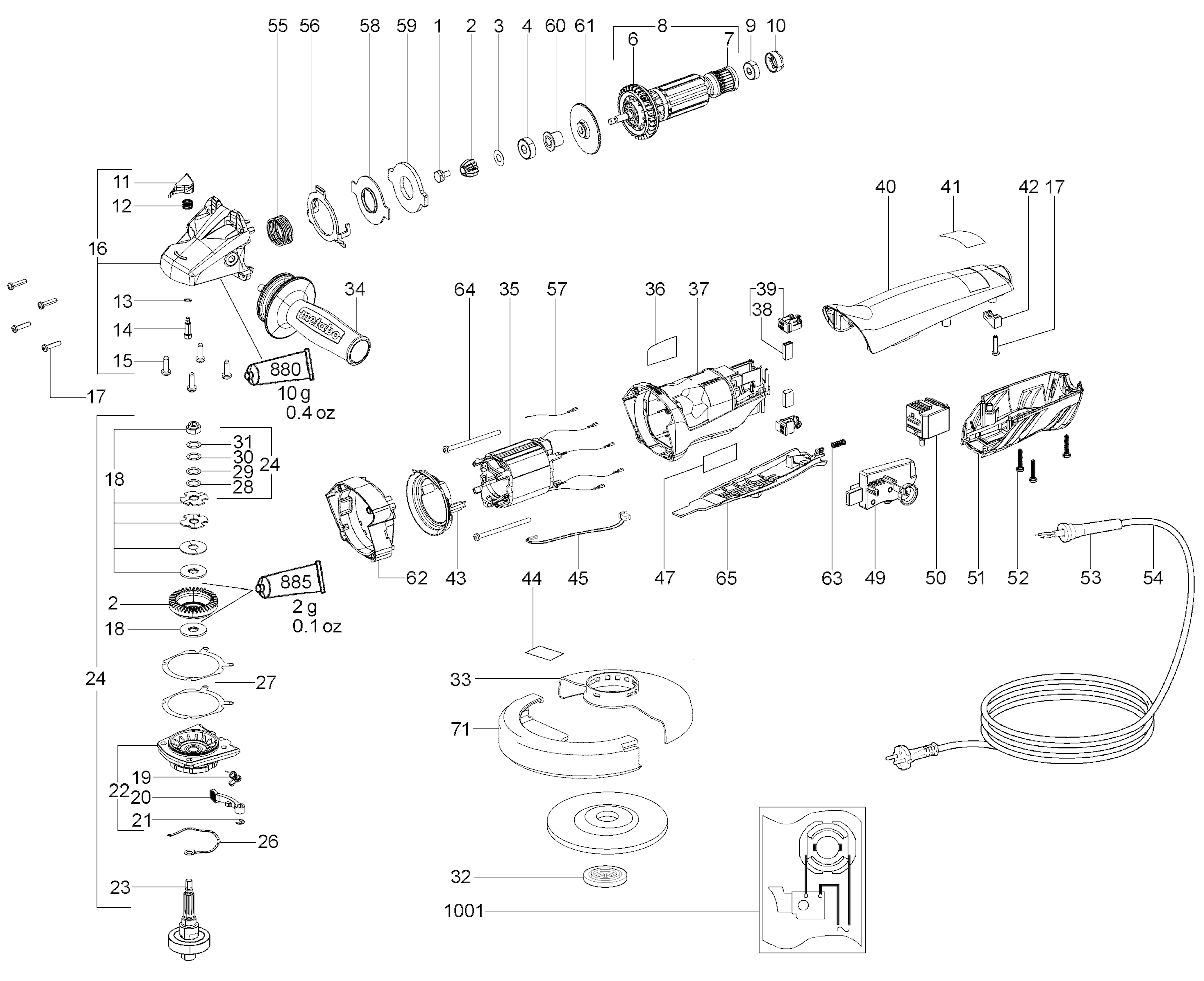 Onderdelen lijst van de Metabo 00322000 ( WEPBA14-150QUICKPROTECT )